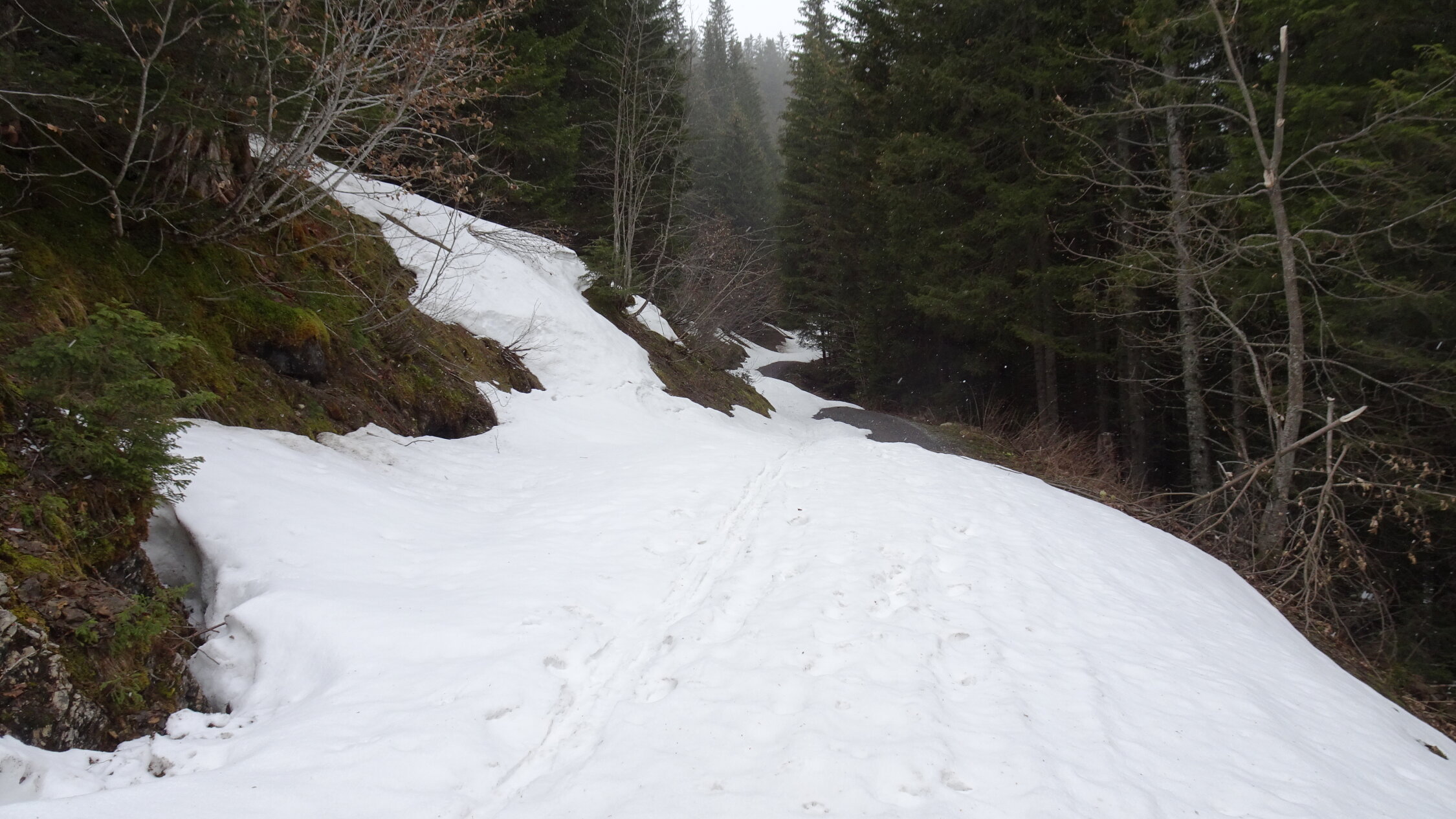 Schnee hat es erst oberhalb 1650m durchgehend darunter mal tragen mal Fellen.