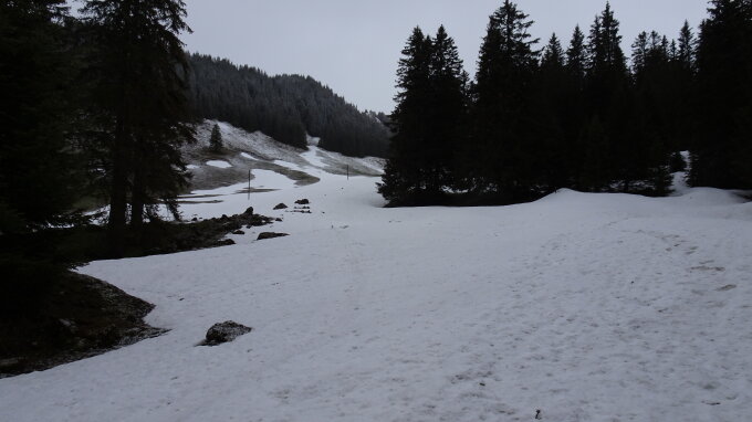 Im Aufstieg ab Reservoir Untere Gantrischhütte 1530m immer noch durchgehend Schnee bis Gipfel