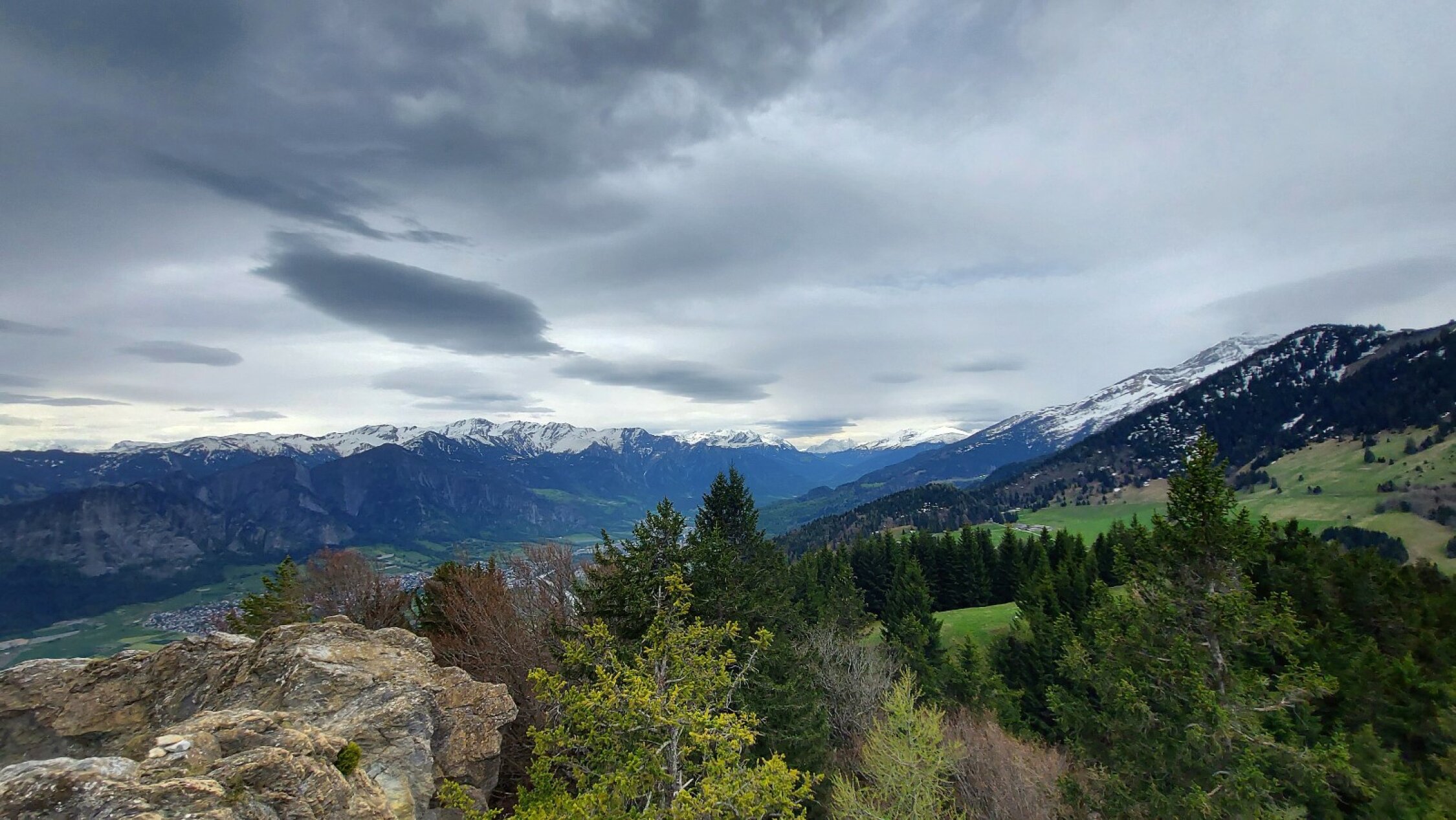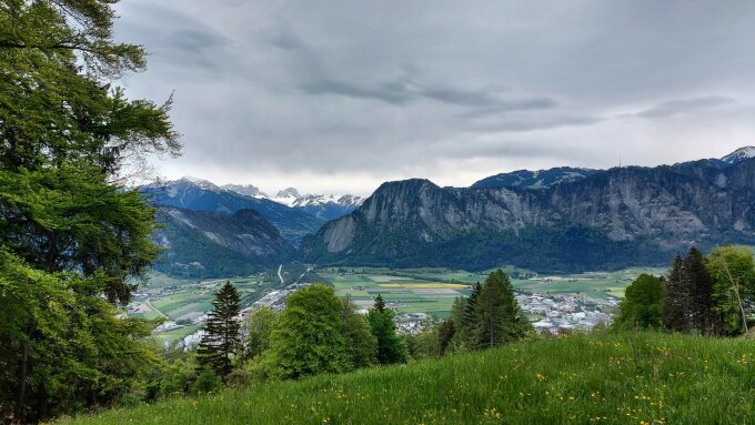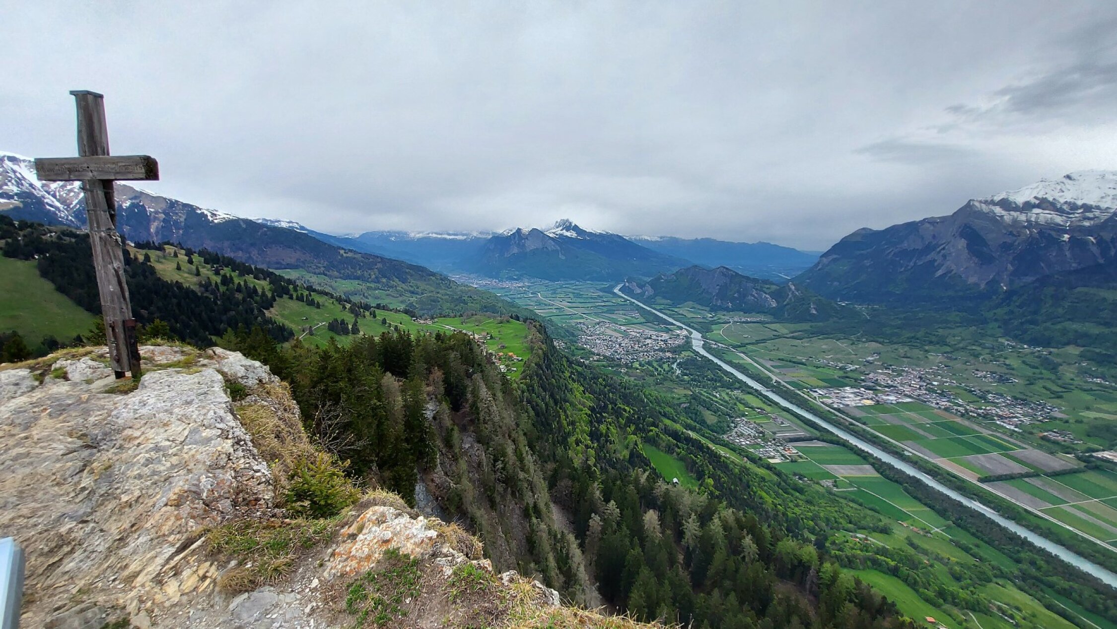 Am Morgen stark bewölkt, aber Berge wolkenfrei. Im Laufe des Vormittags aufkommender Föhn, der für Aufhellungen sorgte. Am Gipfel stürmischer Südostwind. Während wir am Gipfel waren, hatten sich die Churfirsten und der Alpstein in Wolkengehüllt. Hingegen Sonne über der Calanda. In den windgeschützten Flanken mild und warm. Bei der Rückkehr nach Mastrils hatte es 18 Grad.