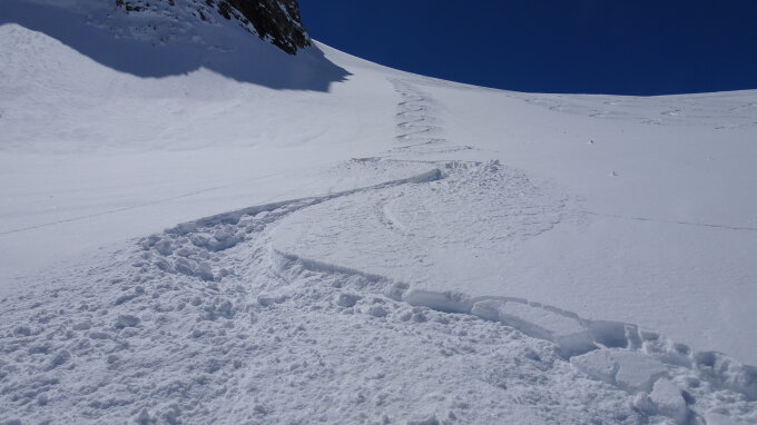 Oberhalb 2000m 15 bis 30cm Pulverschnee herrlich zum Abfahren darunter guter und schneller Nassschnee