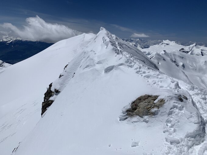 Späte Fahrt mit dem Bus um 8.30 auf die Iffigenalp. Nach dem gestrigen Wintereinbruch haben wir vorsichtshalber den Bus genommen. Wettermässig hat sich dies auch gelohnt, da wir dadurch nicht in den Regen gekommen sind. Die Strasse wäre im Gegensatz zu gestern gut befahrbar gewesen. Dafür mussten wir wegen der Lawinengefahr etwas vorwärts machen und sind in unter 4 Stunden aufs Wildhore gelaufen. Dies bei schönem immer wie sonnigerem Wetter. Der Schnee war oberhalb der Wildhornhütte pulvrig, unten nass. Zwei kurze Tragepassagen vor dem Groppi. Diese werden jedoch mit dem waren Wetter länger. Ansonsten Traumverhältnisse. Es hat oben noch sehr viel Schnee.