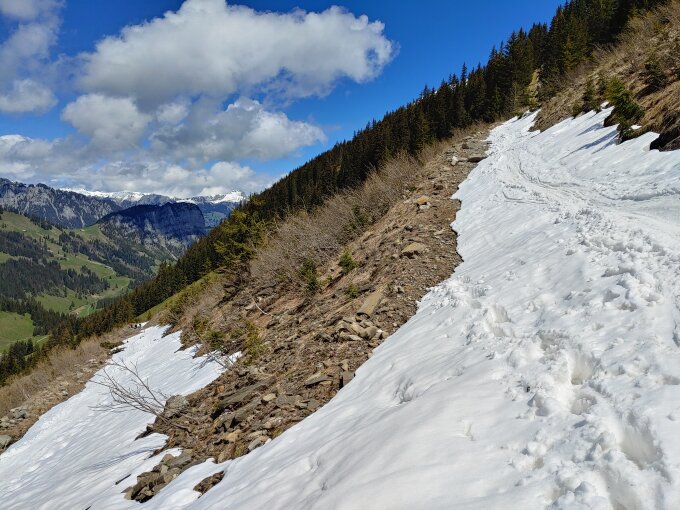 Schnee unten schwindet rapide, oben noch genügend. Könnte mal verfirnen.