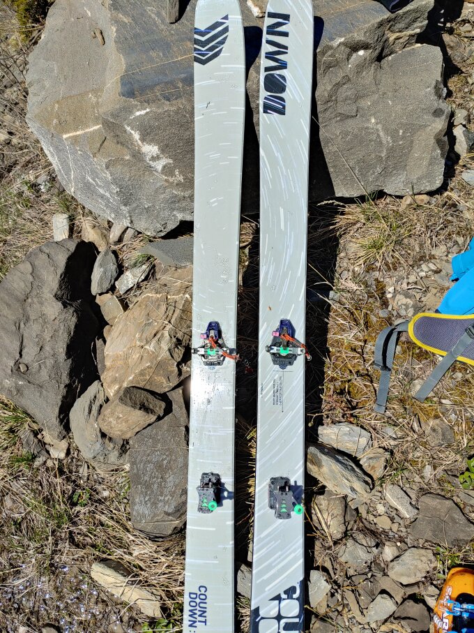 Die dicken "Wasserski" mitgenommen, weil genau das erwartet (nicht durchgefrorene Schneedecke und somit je grösser die Auflagefläche, desto fahrbarer). Unerwartet mit feuchtem Pulver belohnt worden. Unten dann wie "erwartet". Gipfel in 85min. Unten (und ausserhalb des garstigen Windes) dann wieder Sommer...
