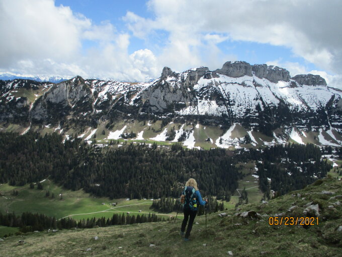 Die Wetterdevise lautete: je später, desto besser. So starteten wir in Brülisau erst gegen 11. Insgesamt war noch recht viel Gewölk unterwegs, es blieb aber trocken. Die Aussichten waren mal so, mal so. Der Alpsigel selbst wurde nie eingewolkt, also auf die Nähe immer klare Sichtverhältnisse. Ein paar Schneefelder gab es im Aufstieg zur Zahmen Gocht. Dortselbst hat es auch noch Schneezungen, aber weniger, als erwartet. Guter Trittschnee mit bereits Spuren drin, es ging alles ohne Steigeisen bzw. Grödeln.