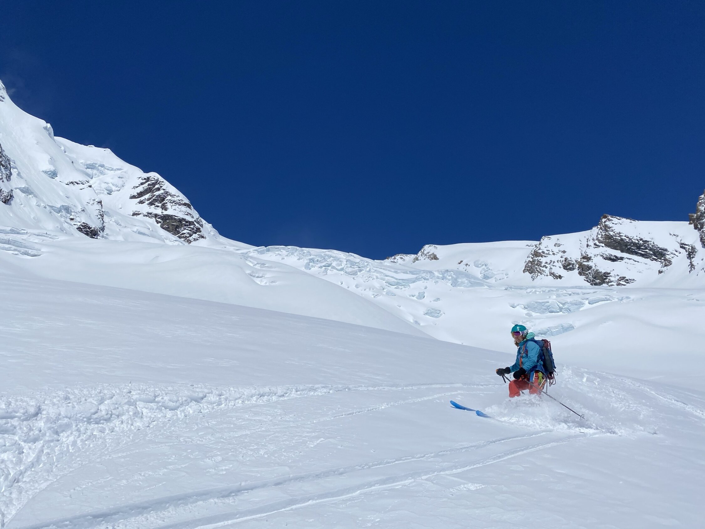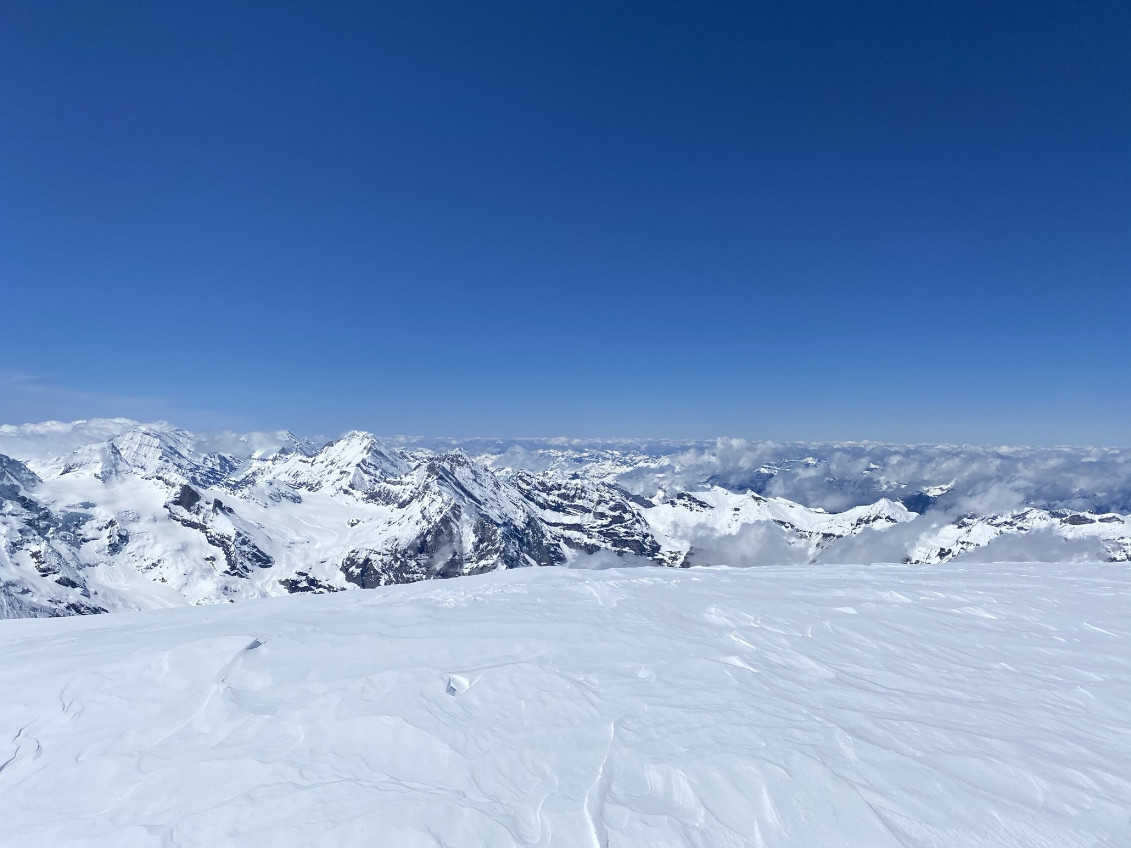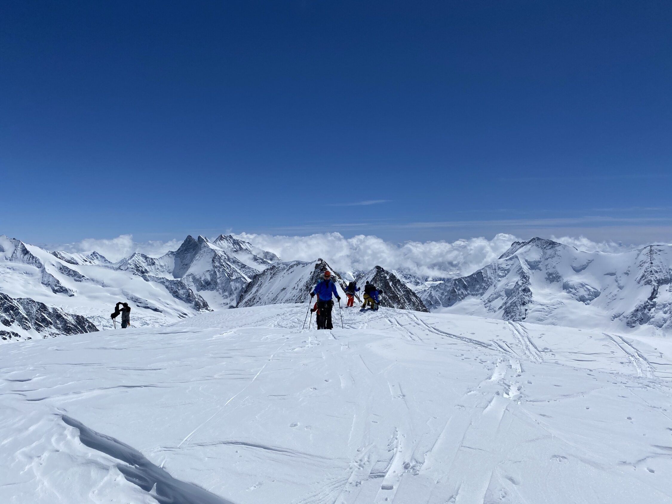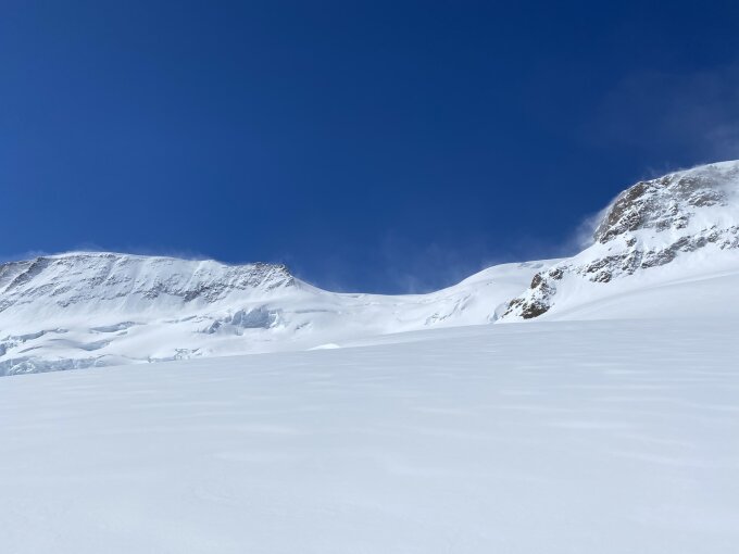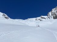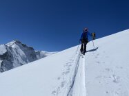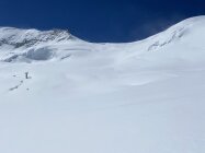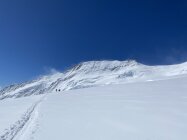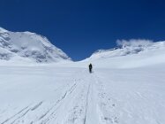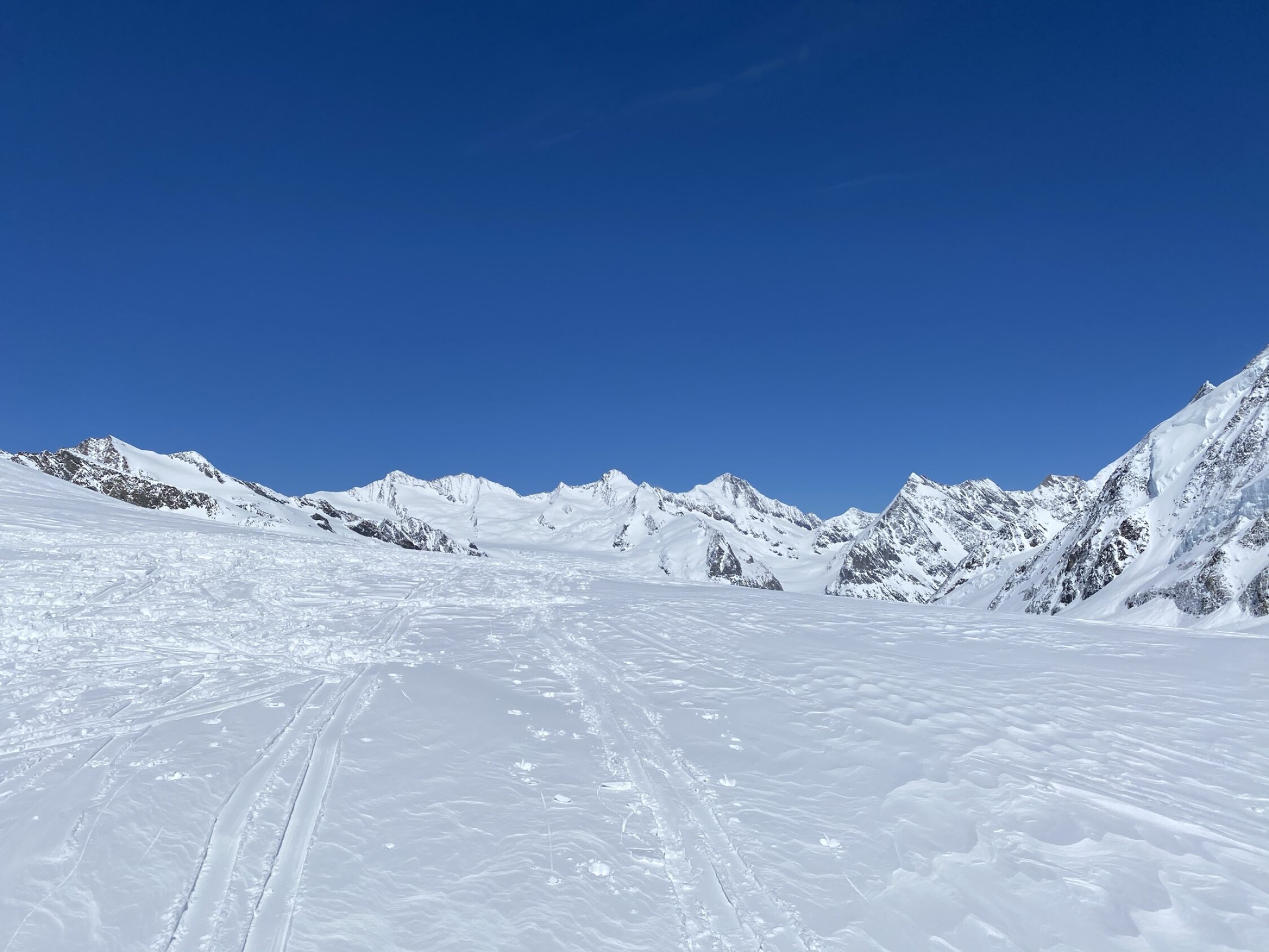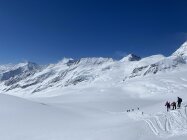 Gipfelflanke fantastischer Pulverschnee der im weiteren Verlauf, den Kranzbergfirn hinunter etwas schwerer wurde. Es hatte viel Platz für eigene Spuren. Gegenaufstieg in die Lötschenlücke auf guter Spur Abfahrt ins Lötschental in zunehmend schwerer werdendem Sulz noch knapp bis Fafleralp möglich.