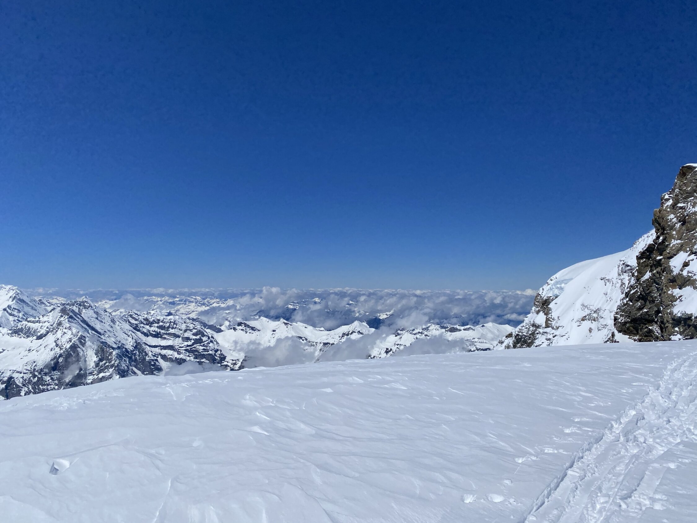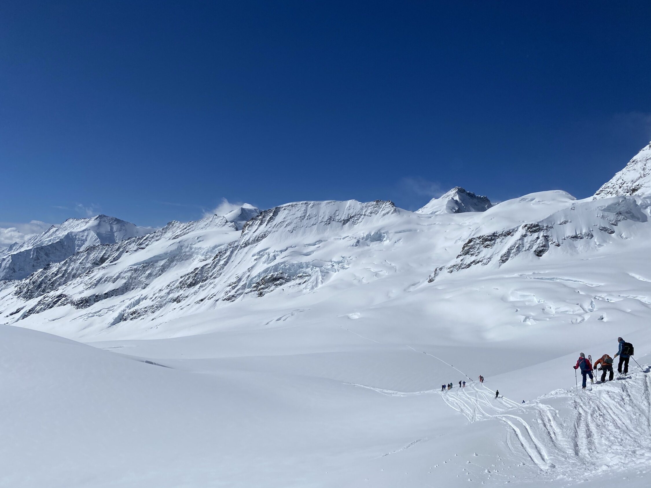 Ausgezeichnete Verhältnisse mit ca. 30 cm Neuschnee. Das Jungfraugebiet ist gut eingeschneit.
