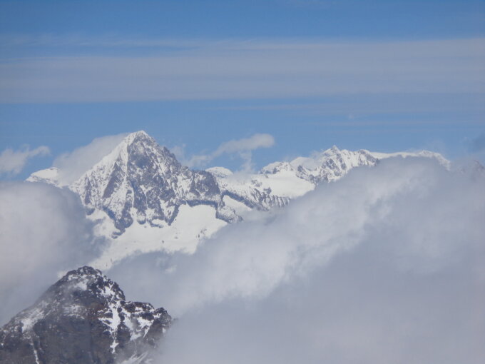 Quizfrage: Wie heisst der dreicksförmige Berg im Hintergrund rechts von der Bildmitte? Kleine Hilfe, es ist ein Viertausender. Danke.