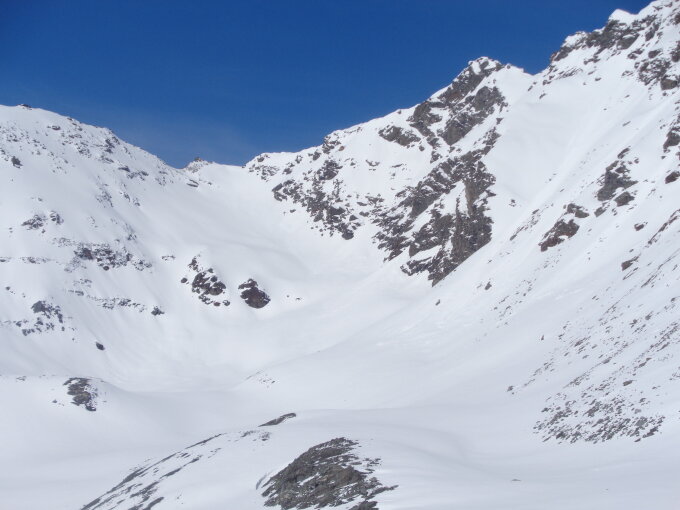 Kann weiterhin noch gut gemacht werden. D.h. ab P.2388m hats noch gut drei Wochen genügend Schnee. Für diese alpine Skitour gehören Pickel und Steigeisen mit.