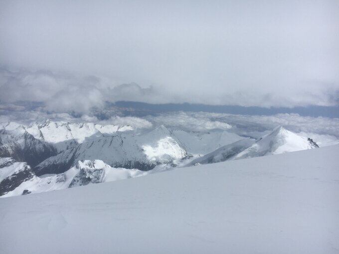 Sind von der Britanniahütte aufgestiegen. Es gab sehr gute Schneeverhältnisse bis auf den Gipfel mit Pulver, der aber teils etwas gepresst war. In der Abfahrt konnten wir noch bis kurz vor Saas-Fee fahren.