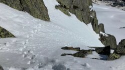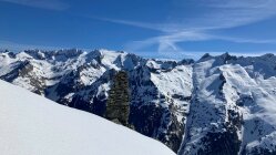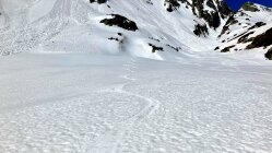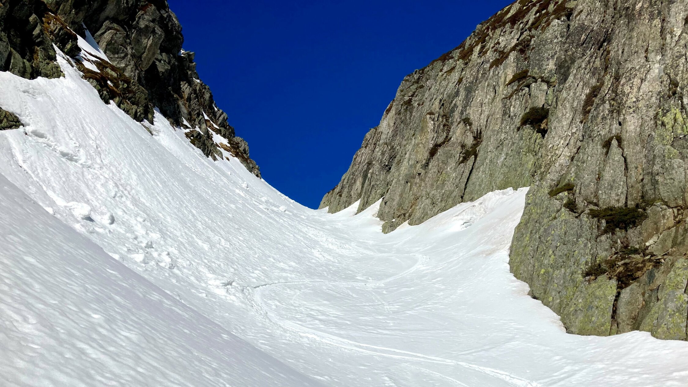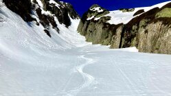 Fantastische Verhältnisse. Am Morgen war der Schnee noch hart, aber es hat später gut aufgesultzt. Harscheisen sind notwendig. Da es noch sehr viel Schnee im Gebiet hat, lohnt es sich, nicht über den Bach hochzusteigen. Das Gipfelcoulvar hat noch viel Schnee und ist einfach zum hochsteigen. Die einfache Kletterei (II) kann gut mit den Steigeisen geklettert werden. Der Fels ist gut abgetrocknet. Für die Abfahrt hat es sich gelohnt bis um 10.00 Uhr zu warten. Oben hat es noch ein kleines Schümli Pulverschnee und dann Sulz vom Feinsten. Der Bach ist sehr gut fahrbar, weil es noch massenweise Schnee hat. Die wenigen Rutscher sind zwar kaum störend, da sie schon aufgeweicht waren. War ganz alleine auf dem Juchlistock.