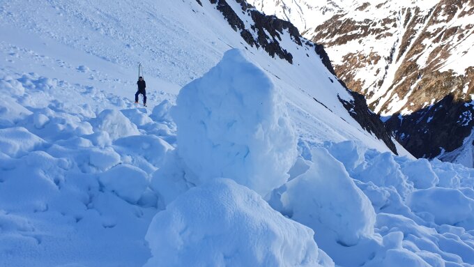 Lawinen: Wir haben keinen Abgang gesehen / gehört - es schien und alles sicher. Die bestehenden Lawinenkegel waren hingegen beeindruckend.