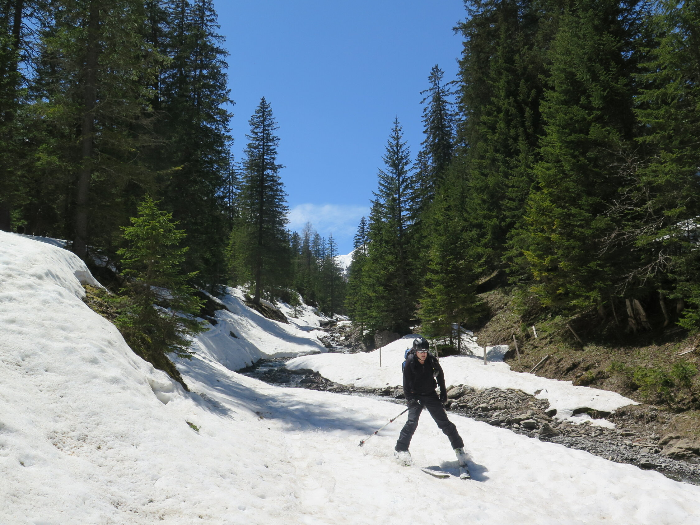 Von der Iffigenalp ca. 15 Min Skitragen bis Brücke 1646. Abfahrt geht mit gegenanstiegen rechts vom Bach in Fahrrichtung bis Brücke bei Iffigenalp (Restaurant).