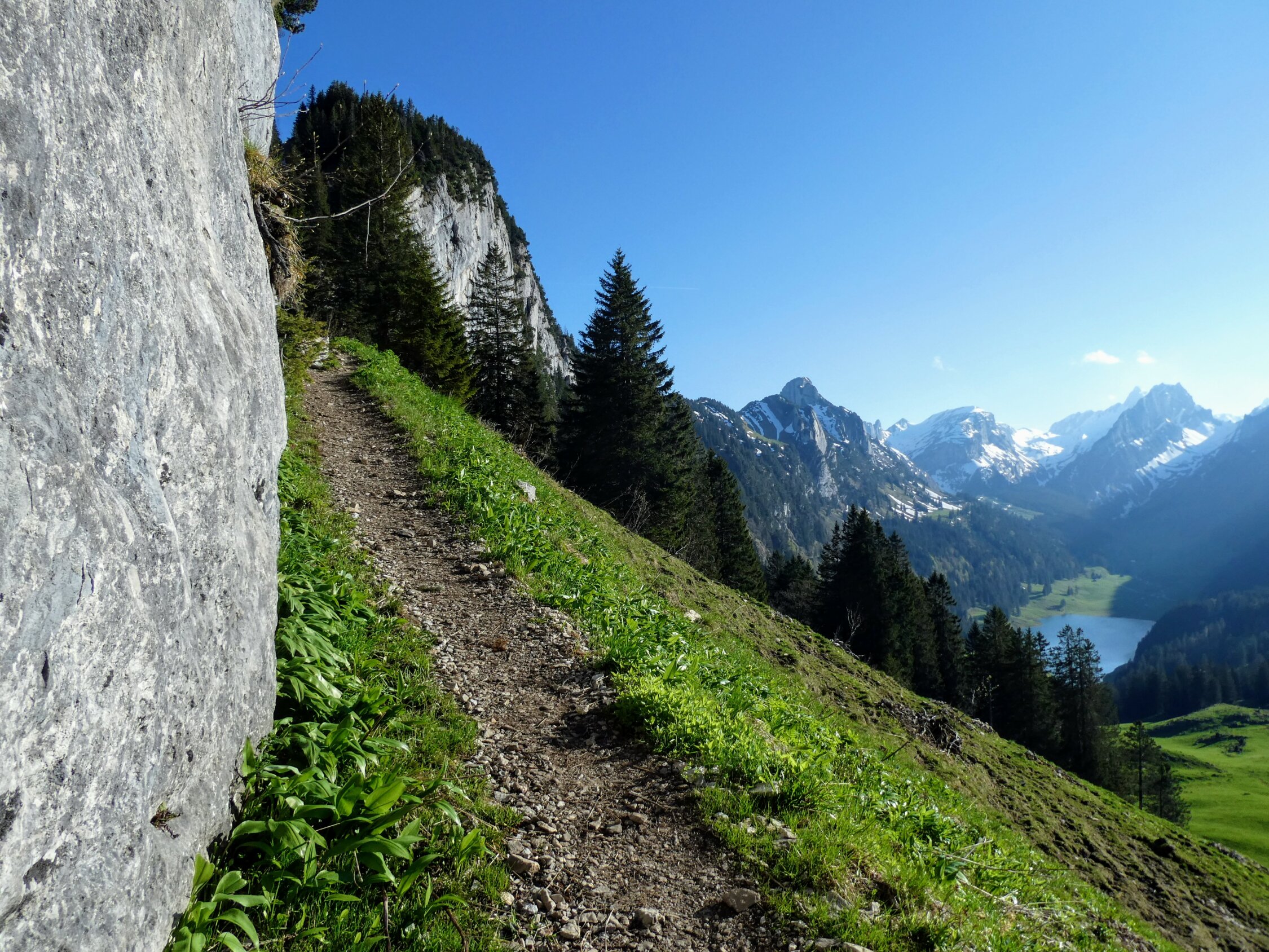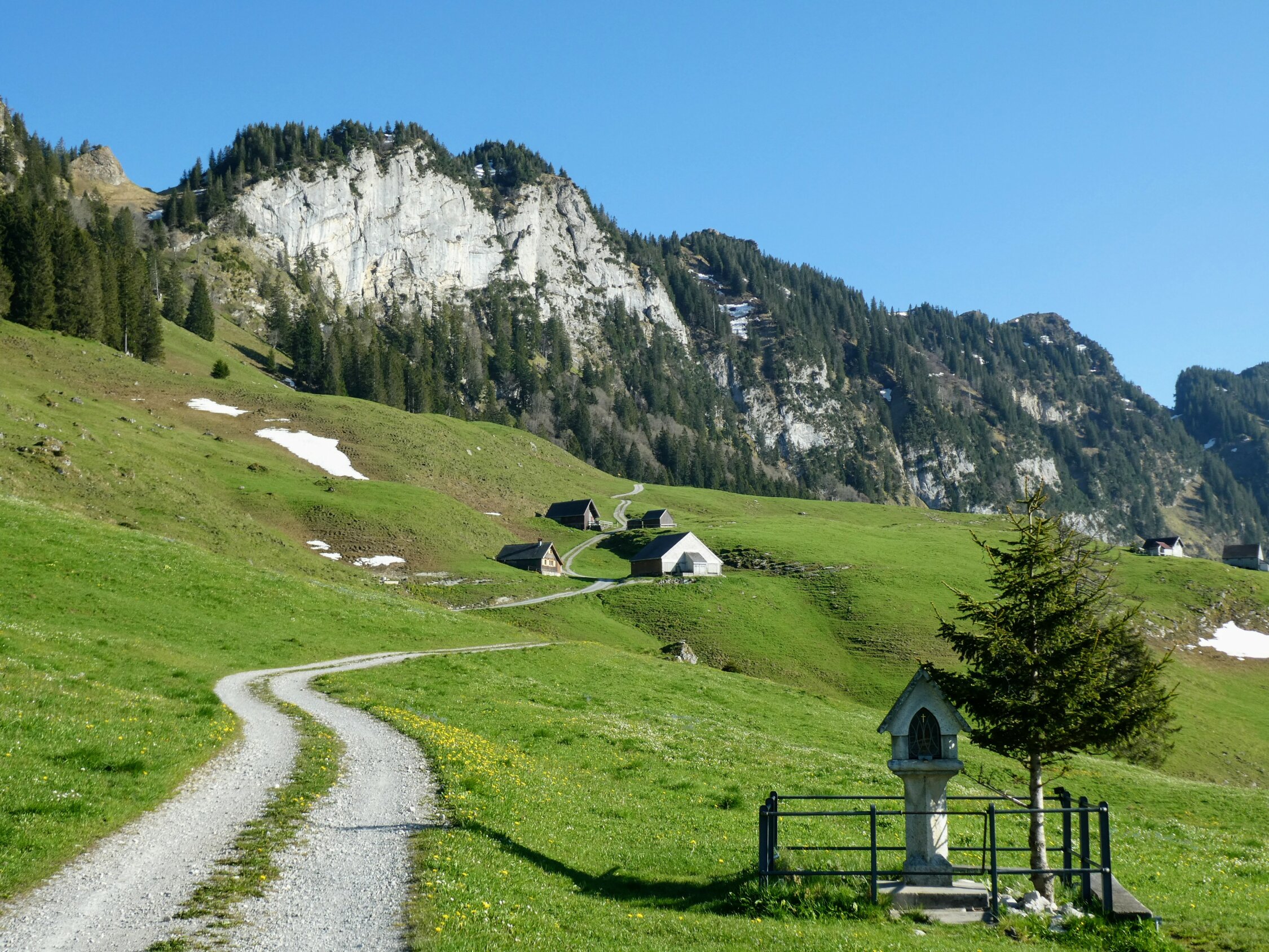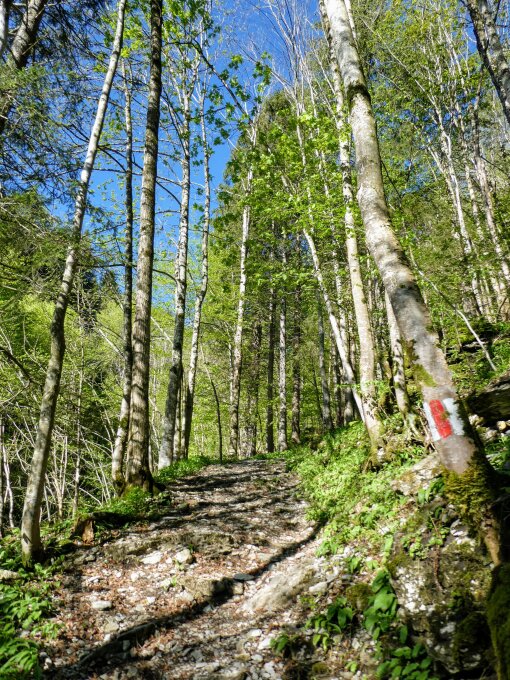 Aufstieg durch den Wald zur Alp Soll teilweise noch etwas feucht und matschig, danach so gut wie überall trocken.
