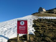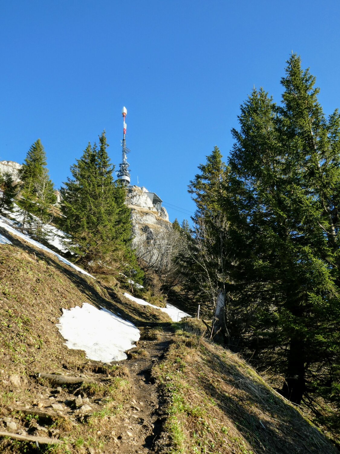 Erster Schneekontakt erst beim Wenneli. Das Schneefeld unter dem Verzweiger ist jedoch kaum mehr die Rede wert. Danach liegt erst oberhalb vom Chatzetöpli wieder Schnee, der aber problemlos zu begehen ist. Auf dem Wanderweg in der Ostflanke unter dem Gipfel liegt immernoch ein grosses Schneefeld.