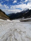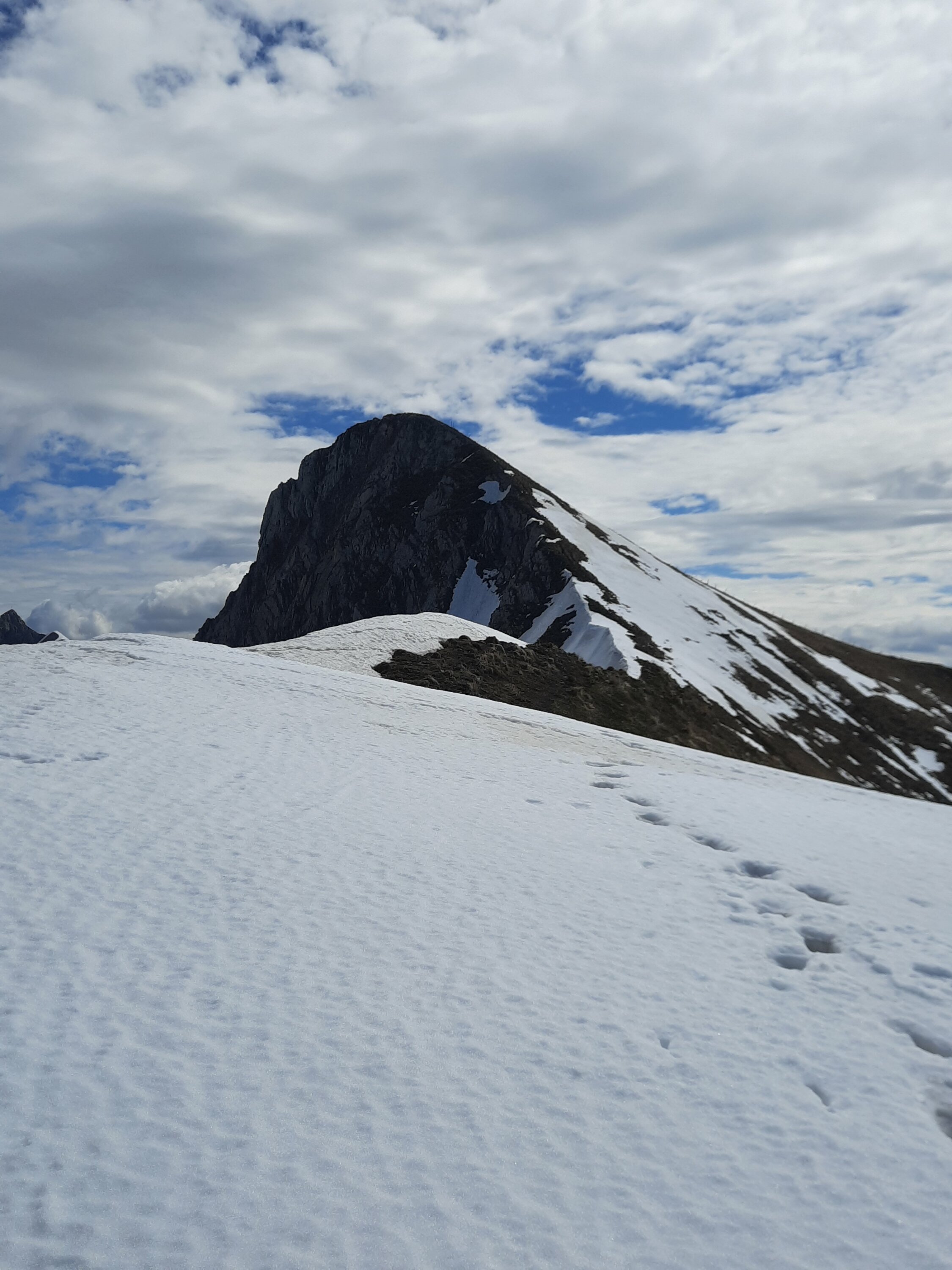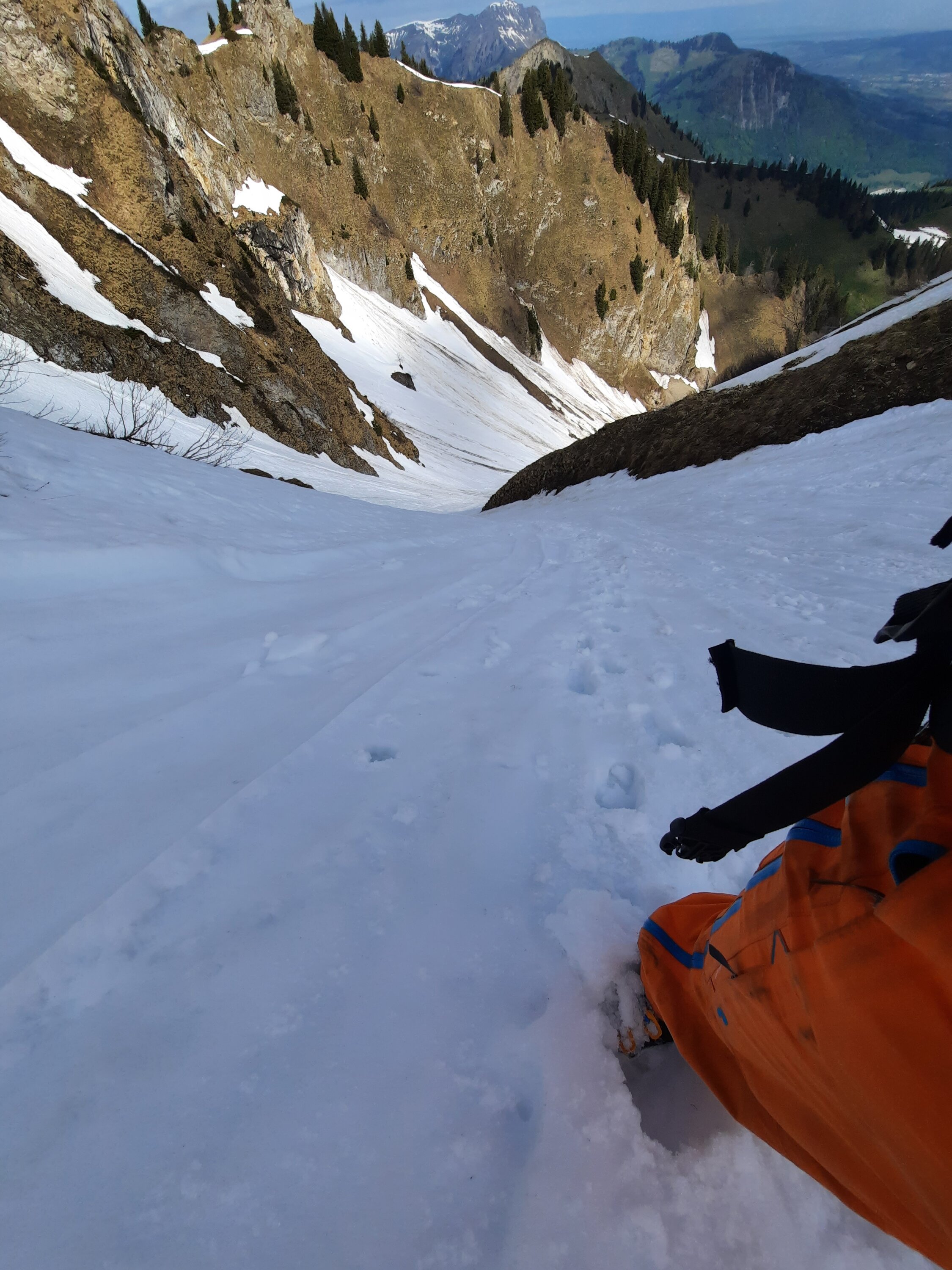 Mit geländetauglichem PW bis an Anfang Schnee (1400m).Start 9.00.5 min Ski tragen.Aufstieg mit Ski bis mitte Culi.Dann zu Fuss (keine Steigeisen nötig)alles Nasschneee,keine Abstrahlung in Nacht,aber tragend und sicher.Ab Ausstieg aper bis Gipfel.Abfahrt direkte Variante mit Steilculiteil schöner Nassschnee gut zu Fahren.Aber ganze Abfahrt viel Nasschneerutsche(jetzt ganze Flanke ausgeputzt!!)Desshalb zügig fahren und schneller sein....auch unten raus schön zu Fahren,kein Durchbrechen.bis 5 min vor PW mit 2 kurzen aperen Stellen.(11.00 uhr)