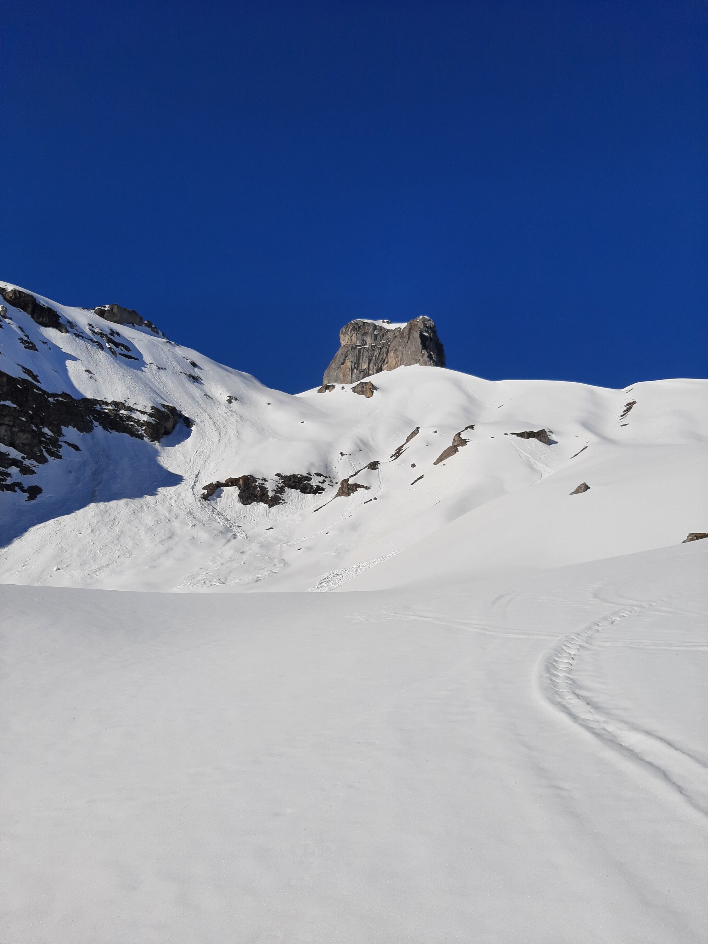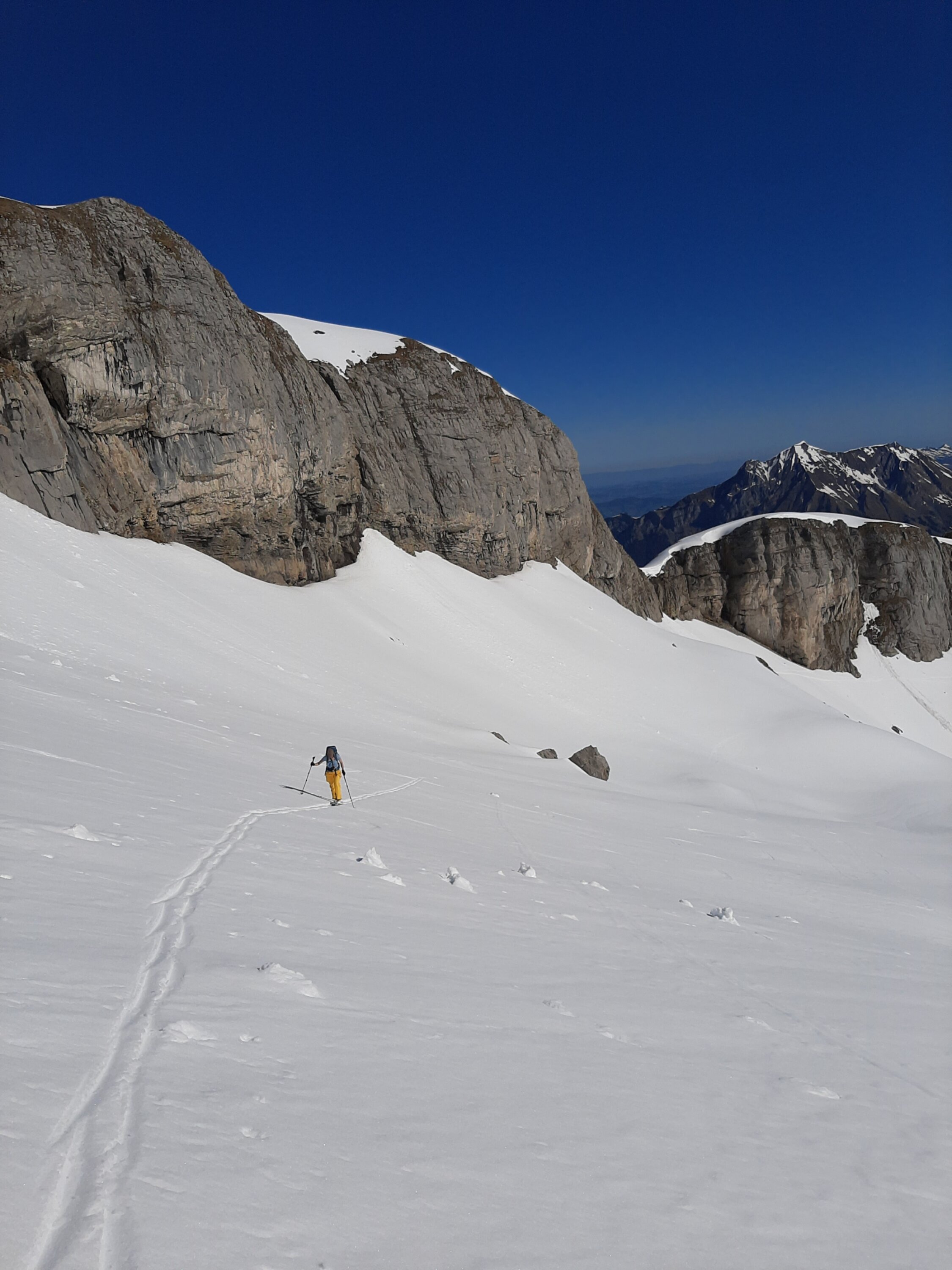 Bei der Abfahrt sind wir via Oberi Bundalp abgefahren. Man kann aktuell dann noch ein Stück dem Weg entlang abfahren bis auch ca. 1750müM. Oben super Sulz, dann etwas tiefer werdend, aber meistens sehr gut. Dann heisst es wieder Ski's buckeln.