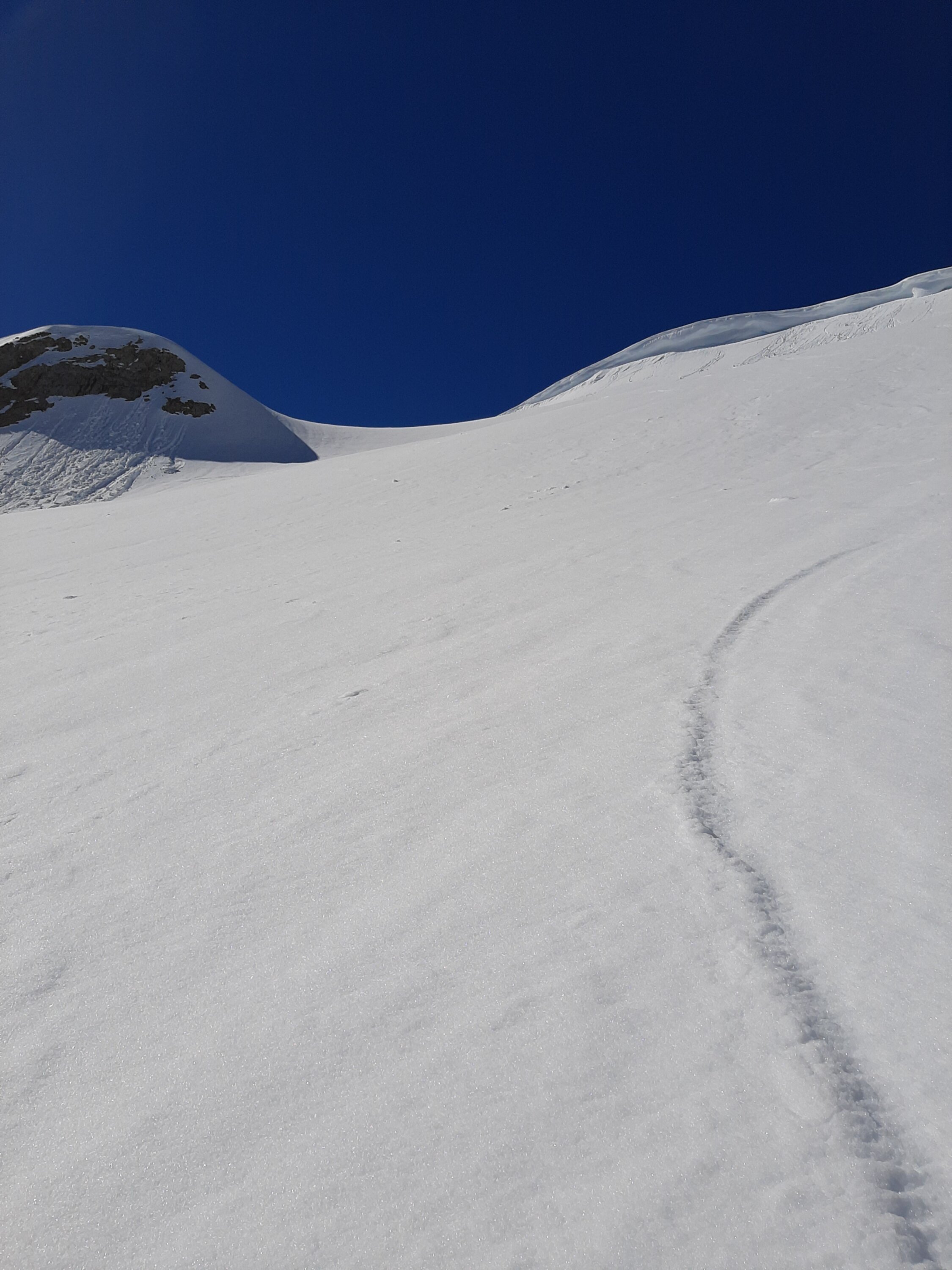 Start auf der Griesalp um 6.30h. Abfahrt Gipfel um 10.30h (war heute etwas knapp). Bei der Traverse Bäretritt ist der Schnee rasch sehr weich. Hier nicht zu spät durchfahren! Es hat noch einiges vom weissen Gold, welches noch runterdonnern wird!