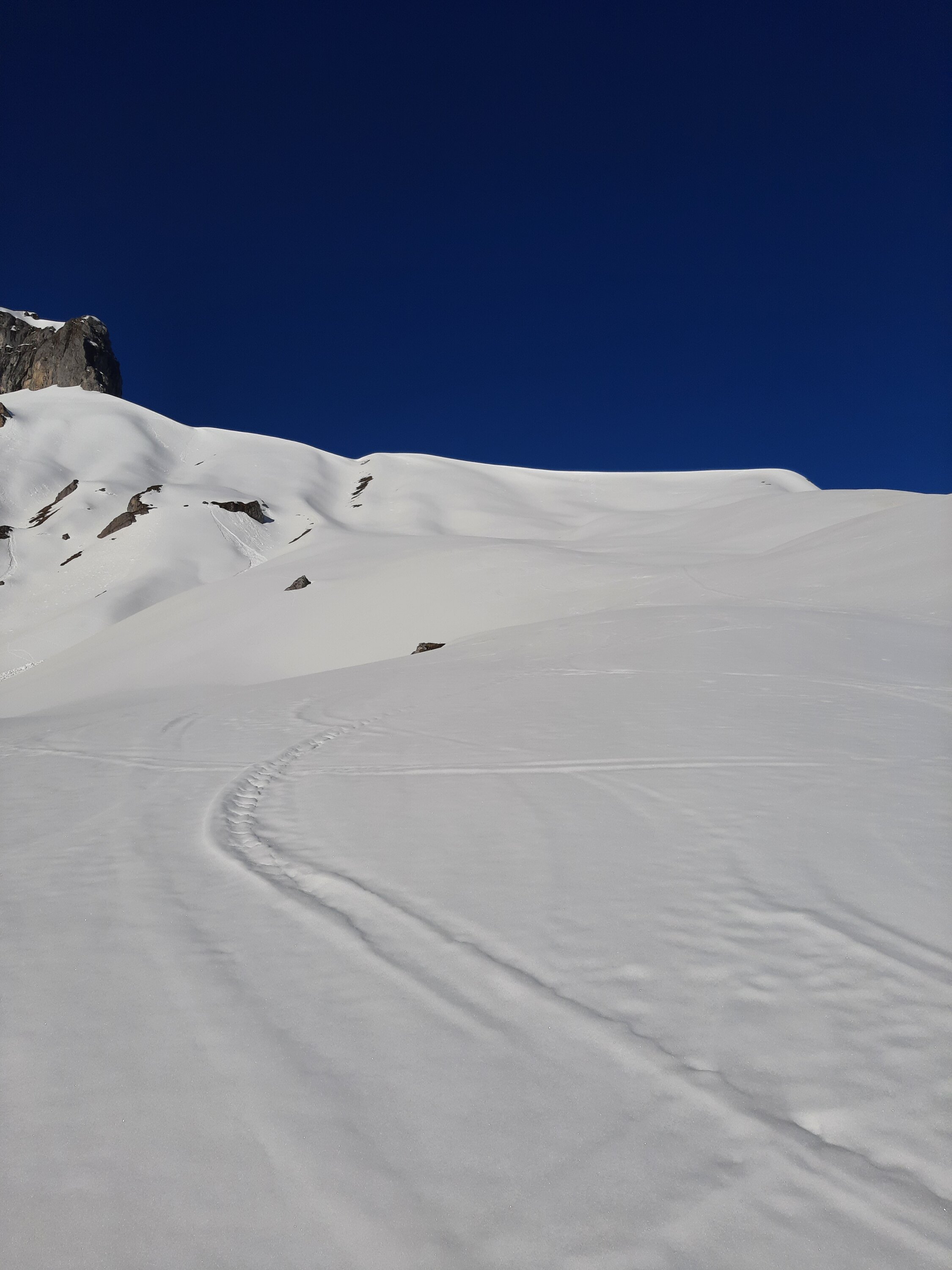 Hohtürli sowie Morgehorn wurden auch begangen. Zwei 2er Gruppen Bergsteiger sind die Blümlisalp direkt hoch (ohne Skis).