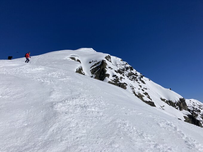 In 2 Stunden zum Gipfel. Abfahrt 10:00. der Schnee war ideal oberflächlich aufgesulzt auf tragender Unterlage.