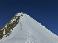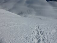 Danke für die Spur, wahrscheinlich vom Wochenende. Außer am Gipfel zwei Normalwegbezwinger keine Seele gesehen. Turtmann Hütte geöffnet
