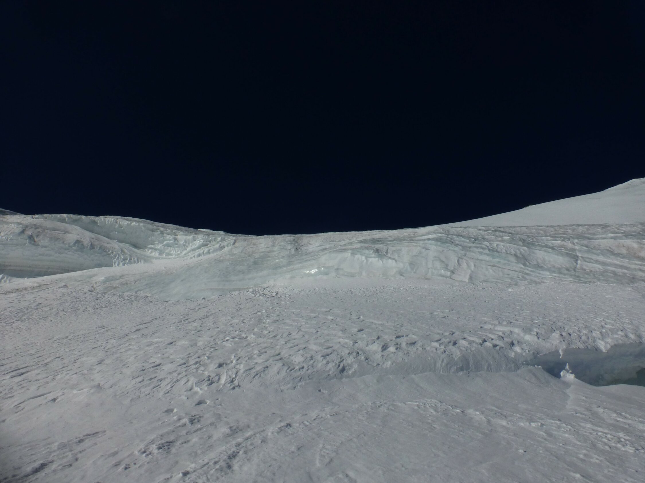 Gletscher hart und perfekt geschlossen. Bergschrund problemlos. Start 3 Uhr Parkplatz, Gipfel 9 Uhr.