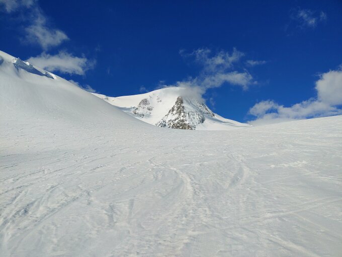 Nachdem das gestern aufgrund Dauerbewölkung (erst Schleier-, danach Quellwolken) nicht wirklich mit der Runde geklappt hat (stattdessen Vorder Tierberg NE-Wand ab ca. 3020 abgefahren, 4 Spuren drin, perfekte Verhältnisse), heute dafür.
