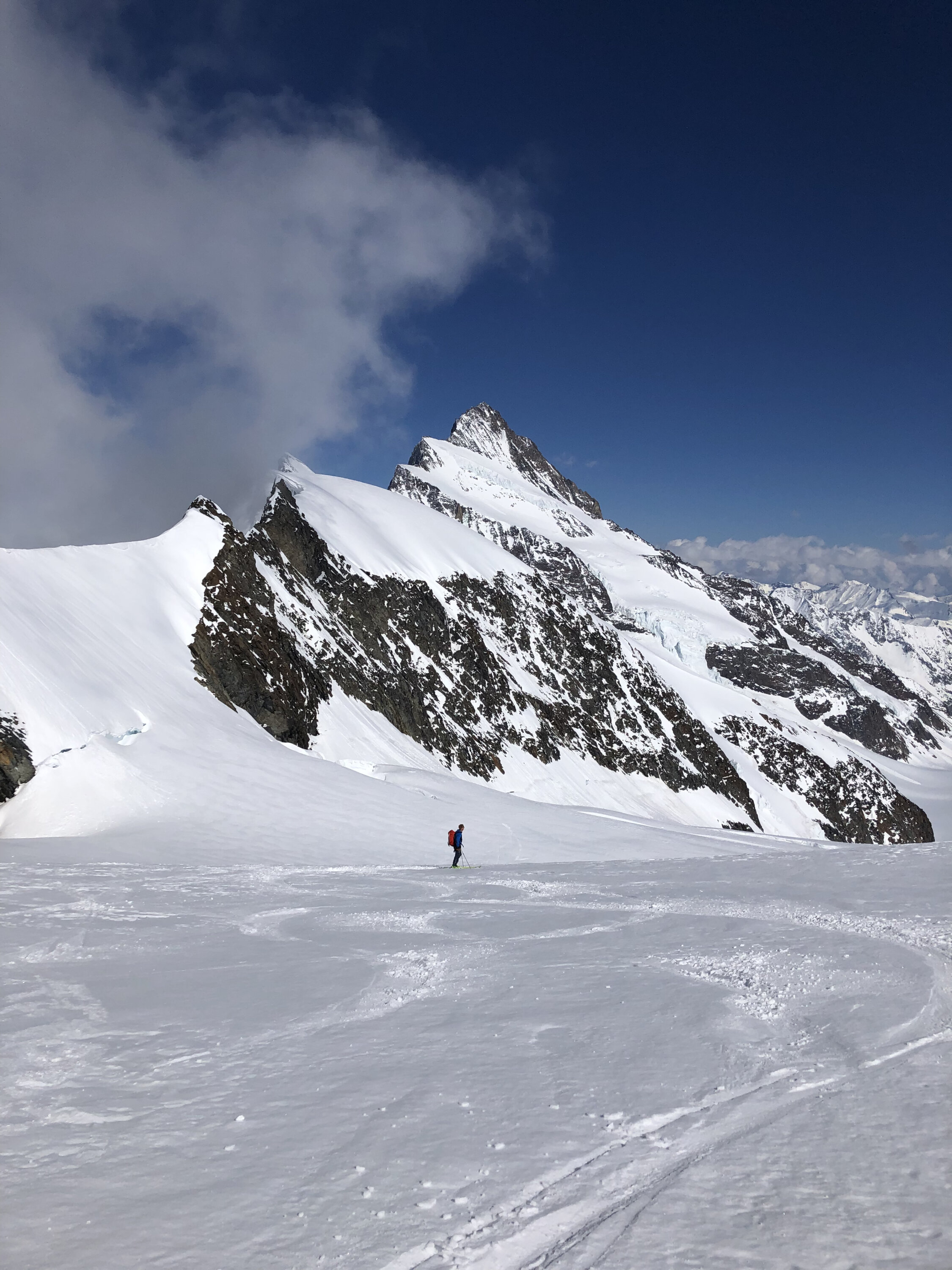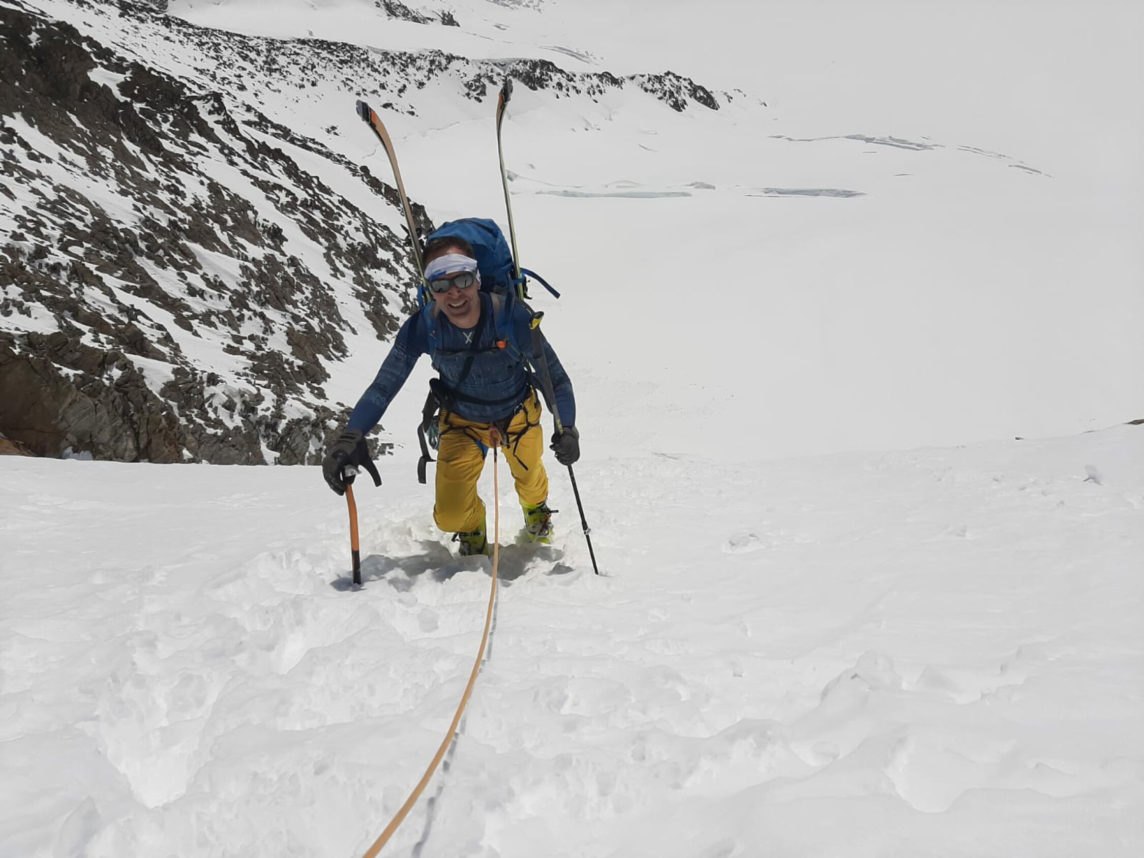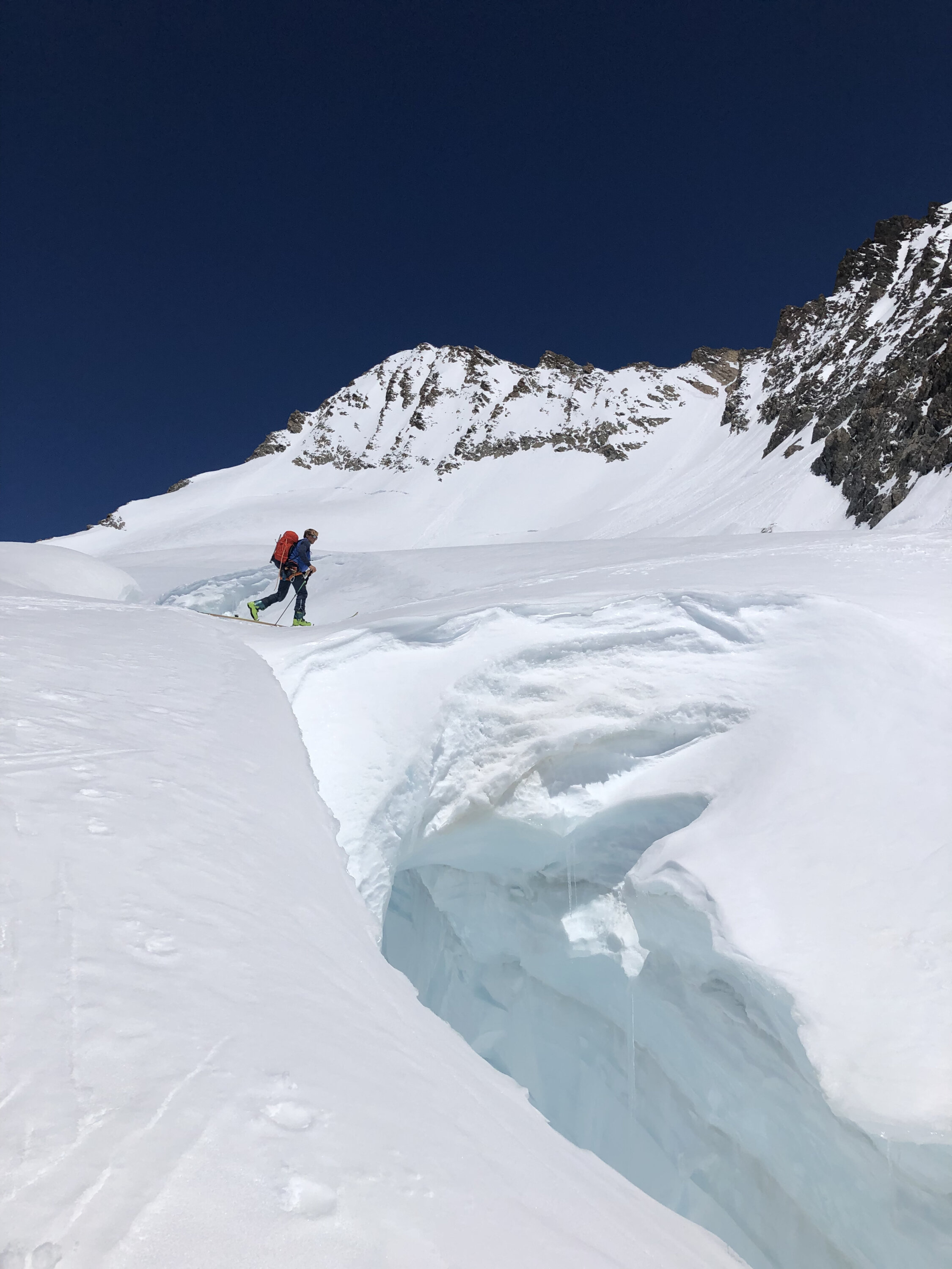 Beste Bedingungen im ganzen Gebiet. Zugeschneite Gletscher, optimale Temperaturen, apere Grate. Wir waren mutterseelenallein auf dieser wunderbaren Tour, was ich nicht verstehen kann...