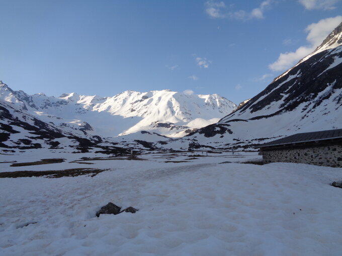 Es hat für Anfang Juni sehr viel Schnee im Gebiet. Bald dürfte der Tourbeginn zur Tragestrecke werden, weiter oben noch gut für einige Zeit.