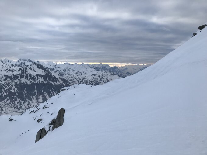 Start ca 5:40 Uhr. Nacht war nicht wirklich klar, daher Aufstiege sehr angenehm ohne Harsteisen. Bei Valettaabfahrt leicht durchgebrochen. Abfahrt Lucendo gut auf kompakter Unterlage, von der Fibbia dann um 10 Uhr schön aufgesulzter Schnee. Später wird es sicher an Pflätsch.