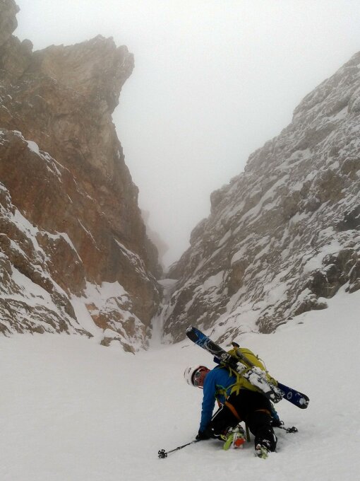 Beste Verhältnisse. Sowohl im Aufstieg im Ausstiegskamin mit ordentlich Eis, sowie auch beste Schneeverhältnisse bei der anschließenden Steilabfahrt...