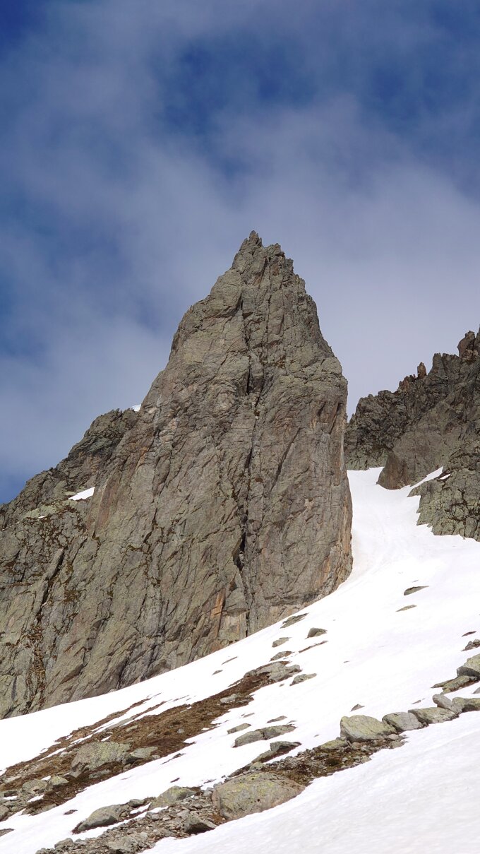 Östlicher Untertalstock: Routen trocken, schneefrei, Grat für Normalabstieg stark verwechtet! und viel Schnee auf dem Schuttband.