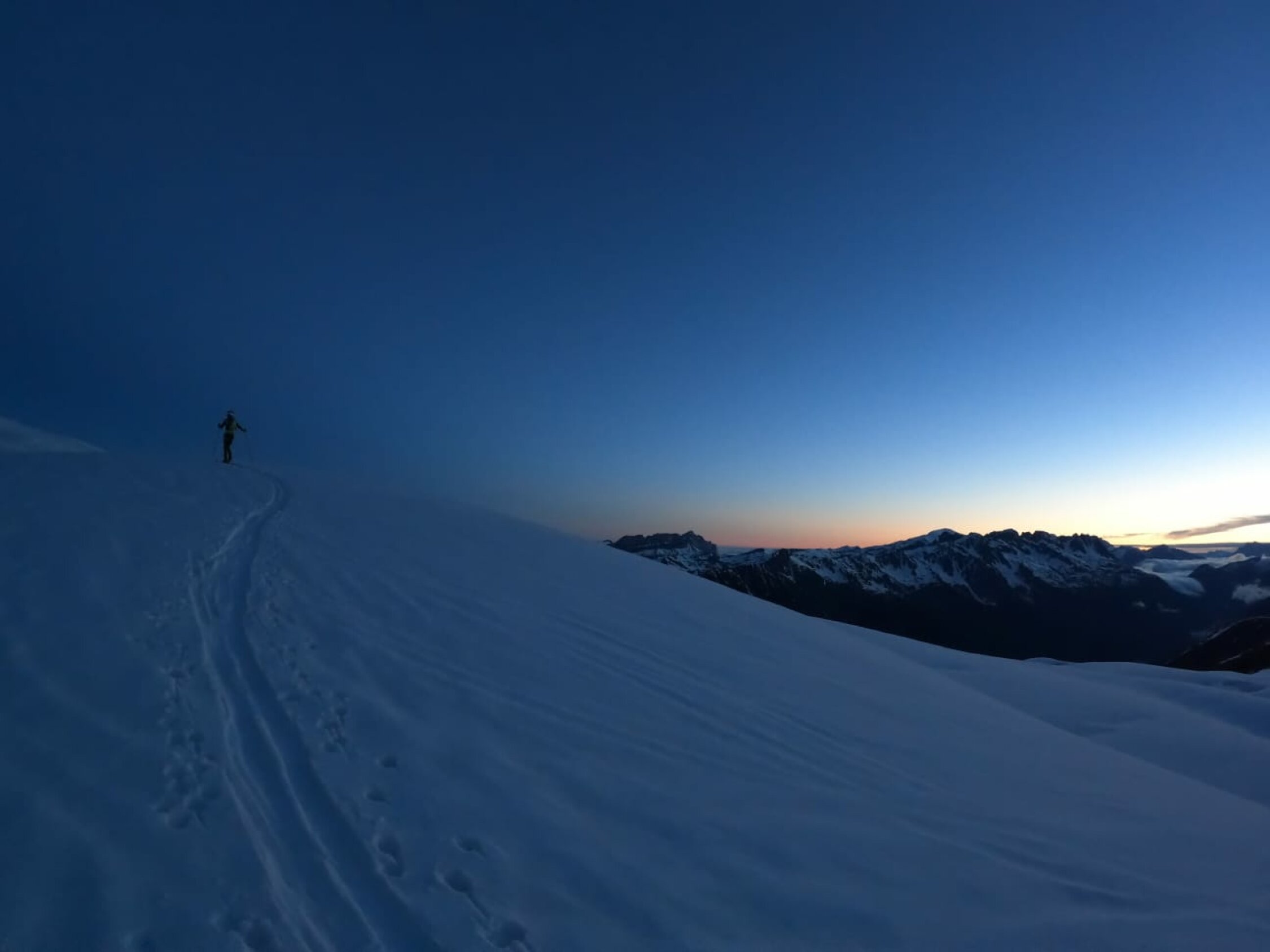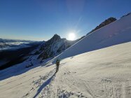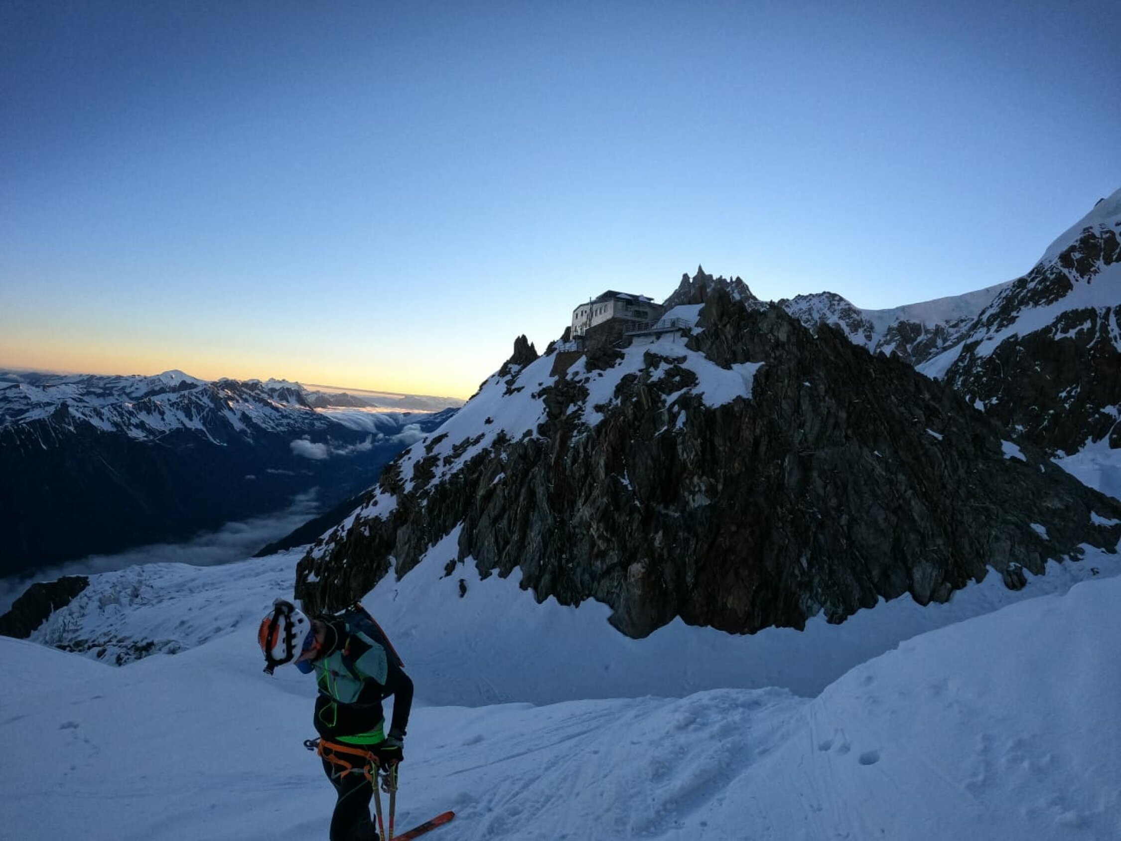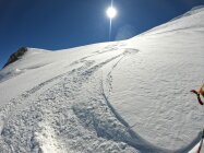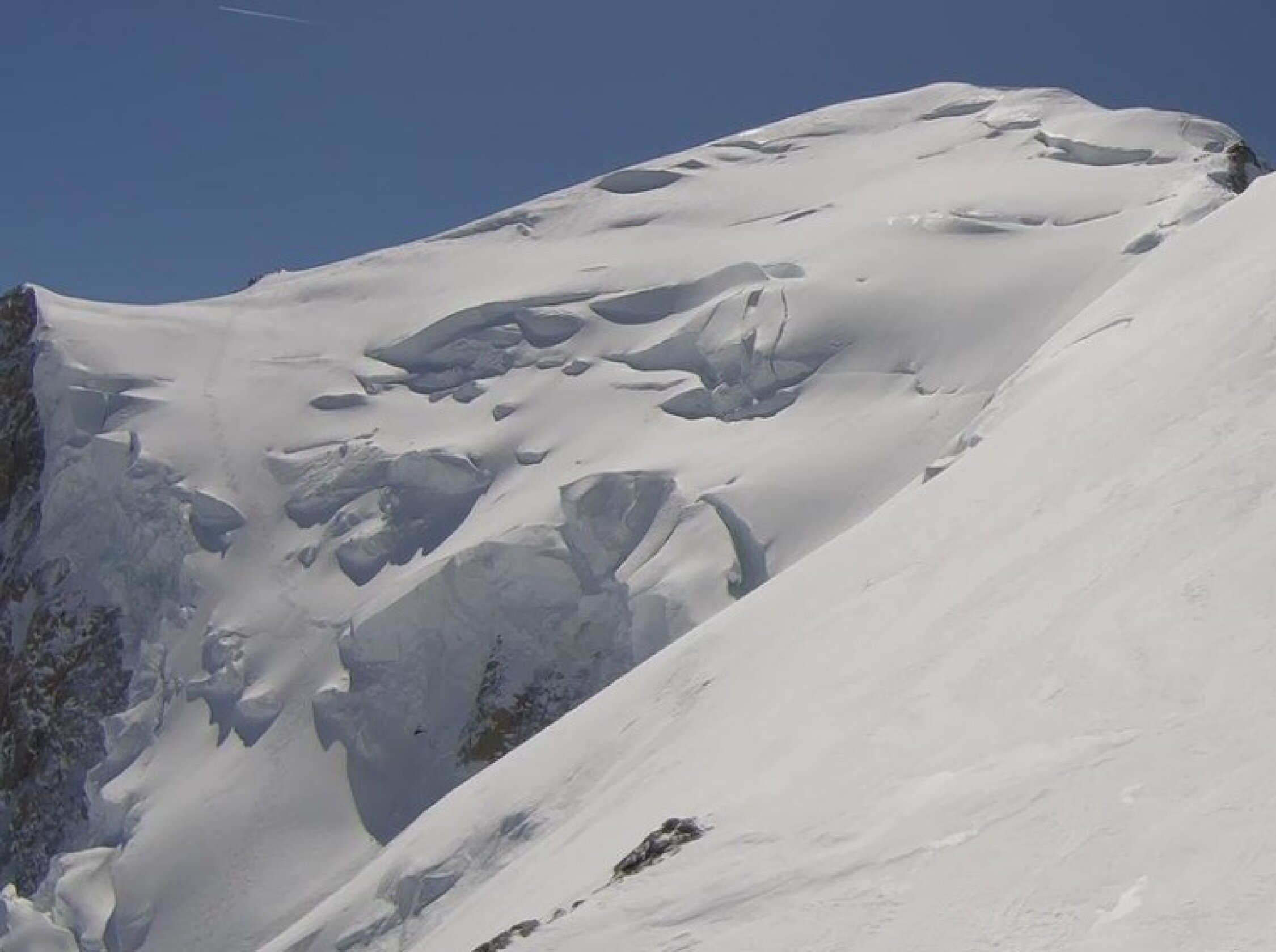 Verhältnisse sind auf der gesamten Route sehr gut, es wird aber nicht über den Dome de Gouter Nordgrat aufgestiegen, sondern über das Petit Plateau. Abfahrt über die Nordflanke perfekt!