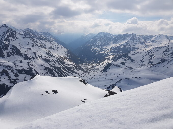 Ideale Sommer-Skitour. Schnee von unten bis oben, keine Tragestelle, Start und Ziel beim Flüelapass, Einkehrmöglichkeit beim Hospiz. Einzig Gipfelgrat kann heikel sein.