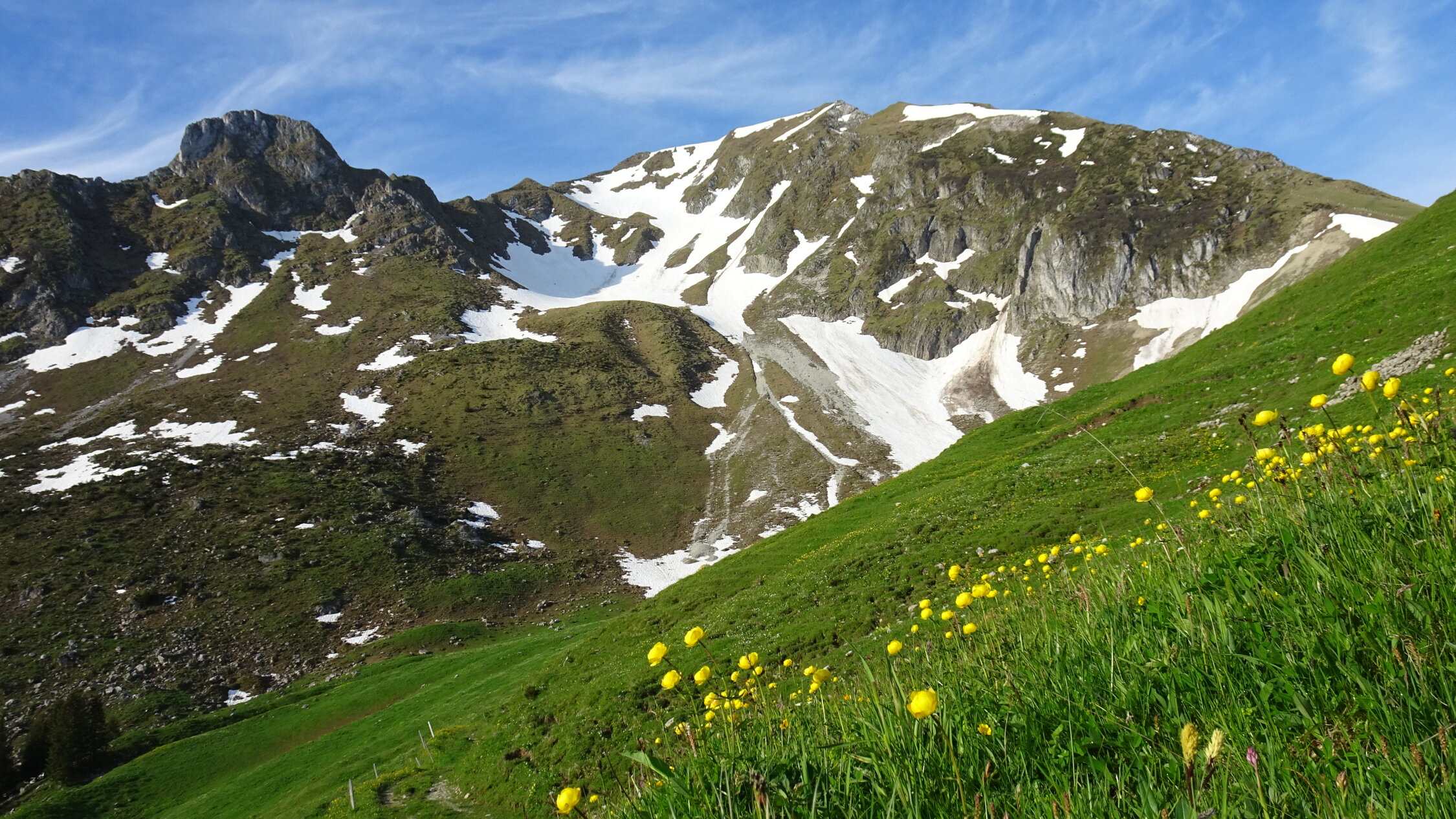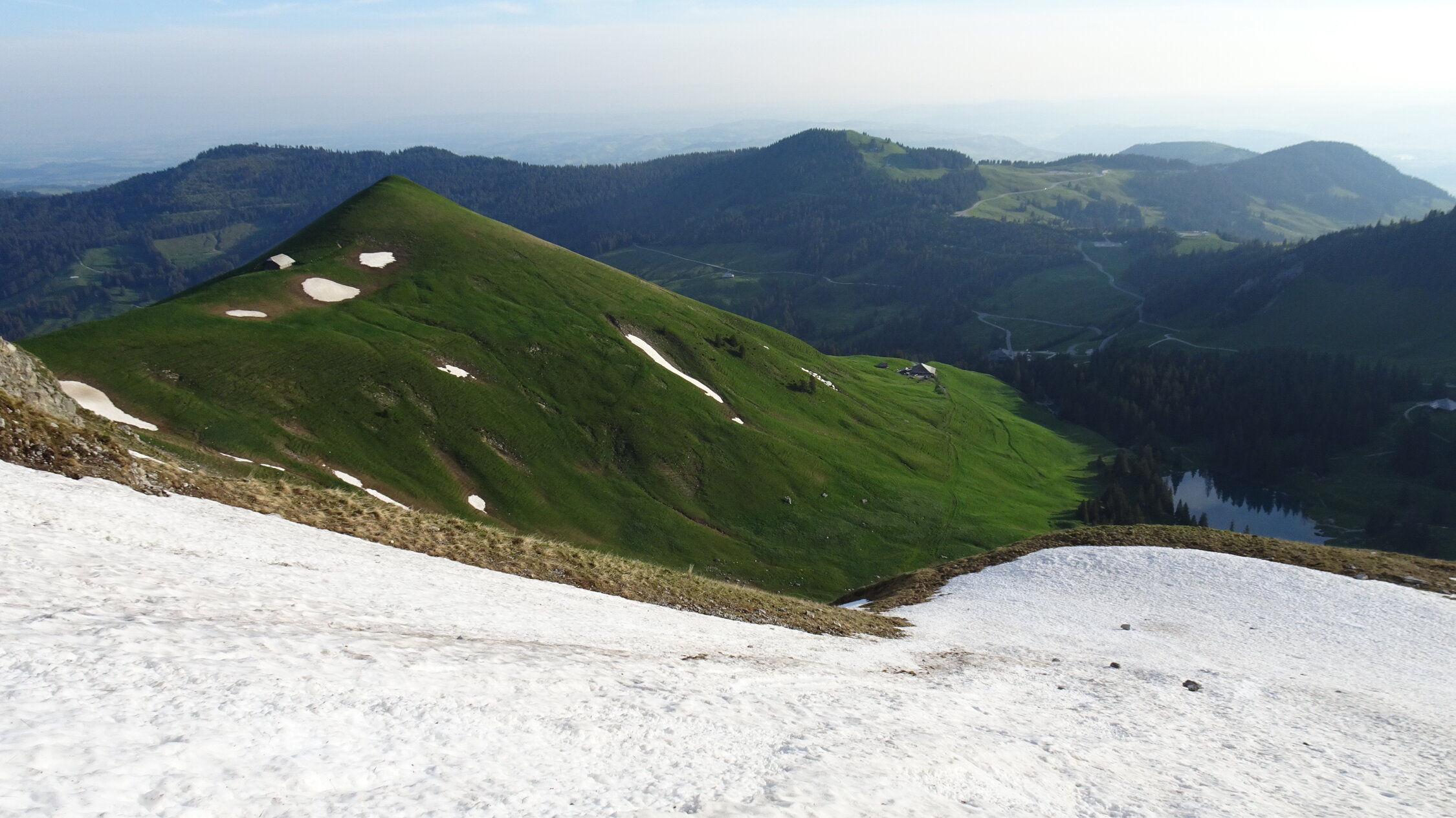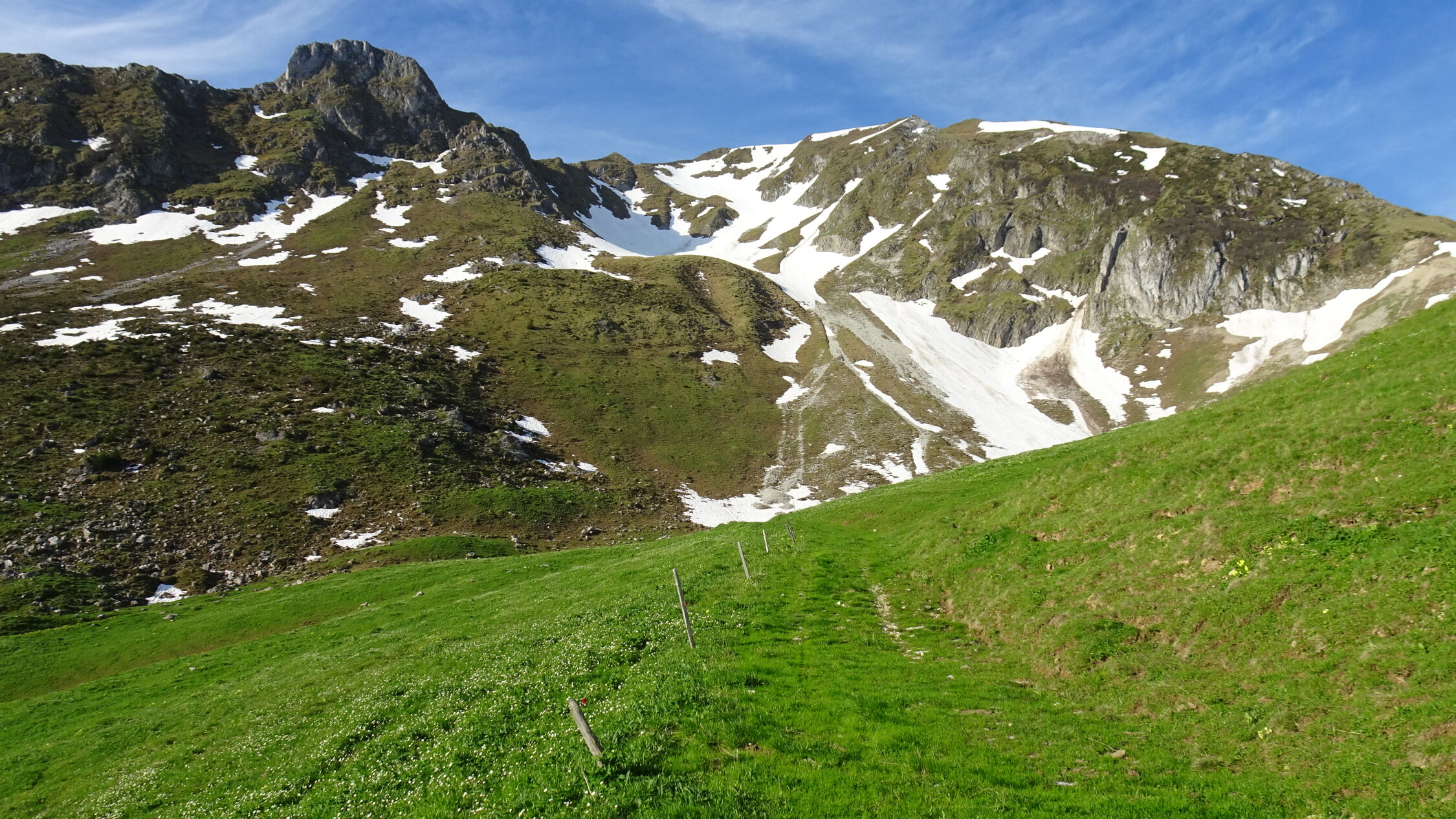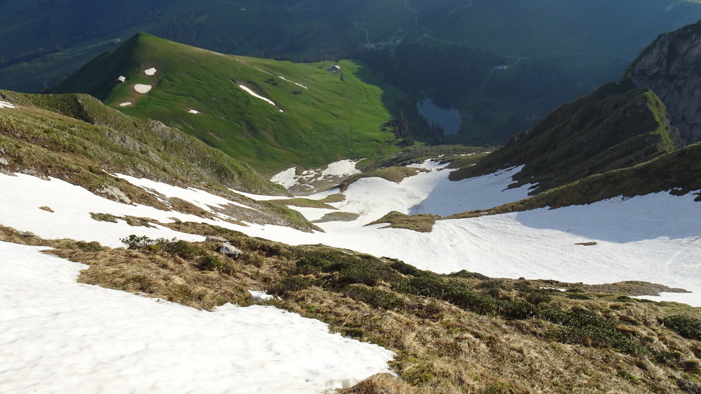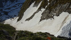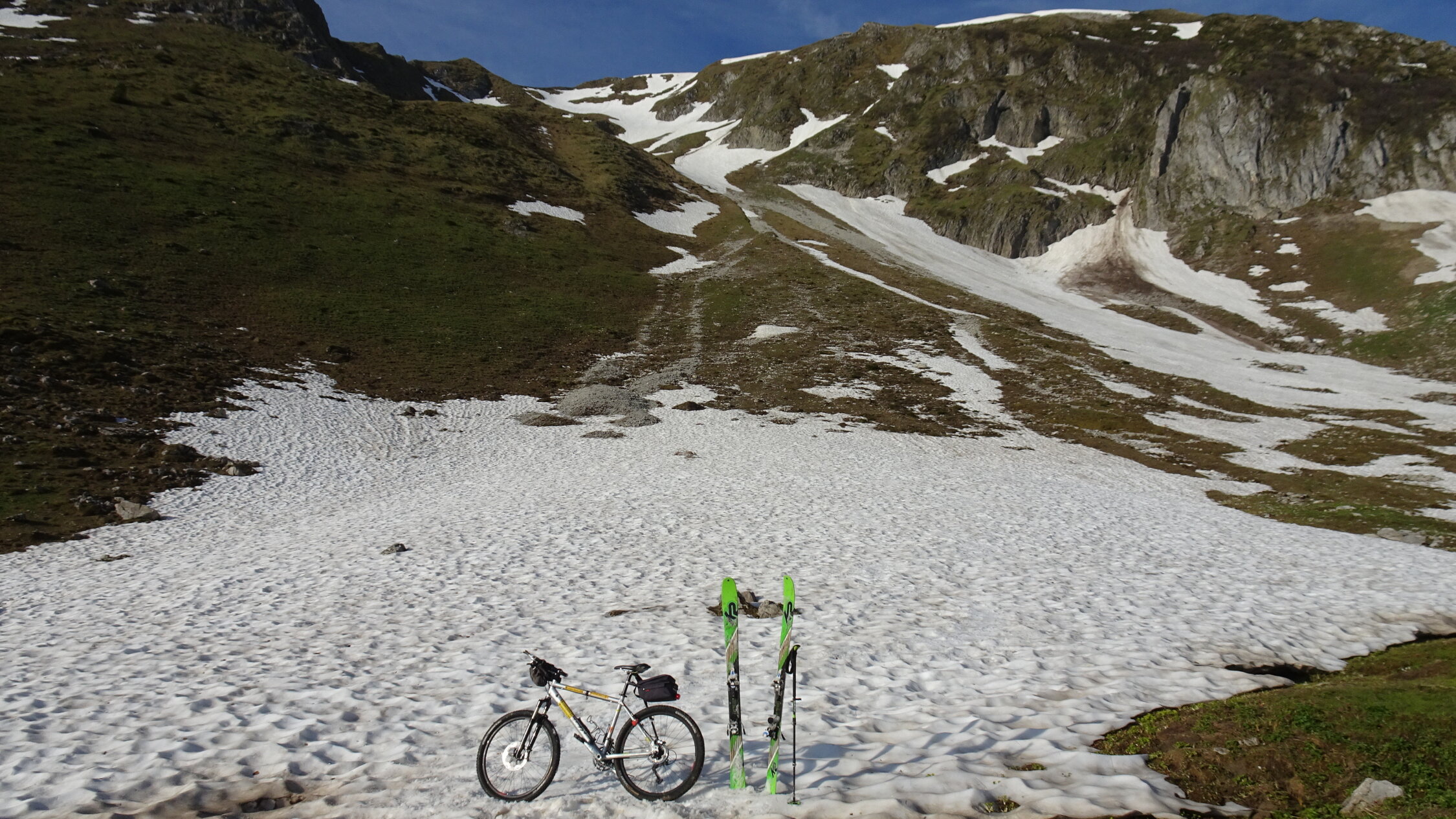 Ich habe mir gesagt noch mal im Juni die Bürglen Nordflanke zu besteigen,also bin ich zuerst mit dem Velo von der Unteren Gantrischhütte mit Aufgebundenen Ski losgeradelt und zwar 150Hm über Birehütte und weiter bis ende Grasweg zum Nordflankenfuss ca.1650m.
