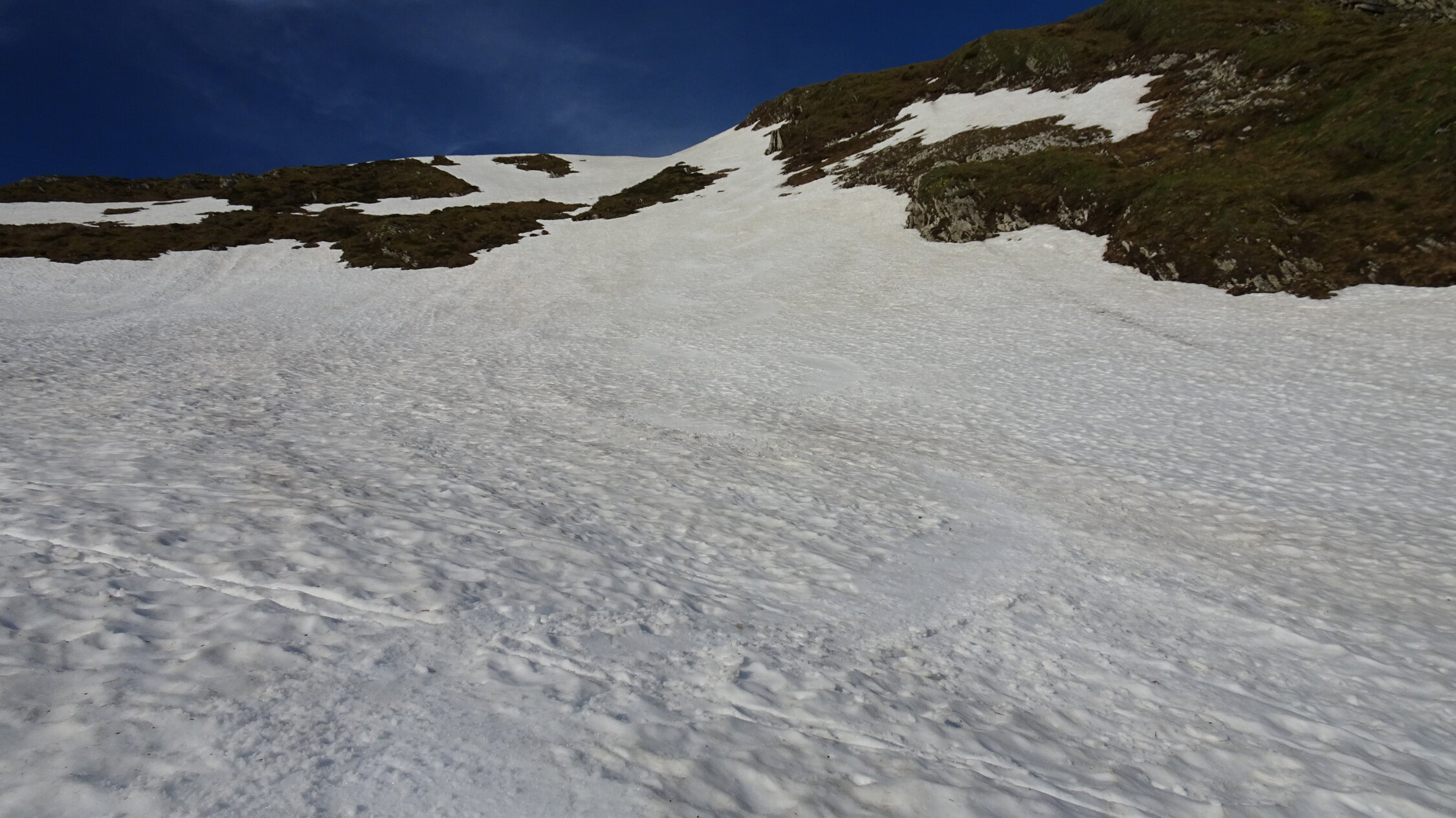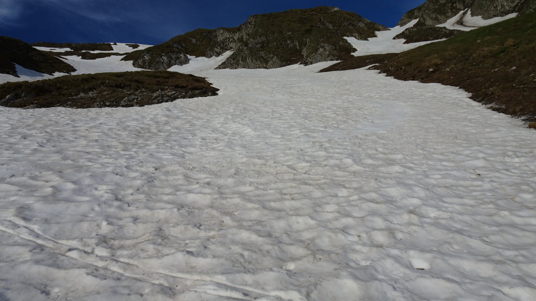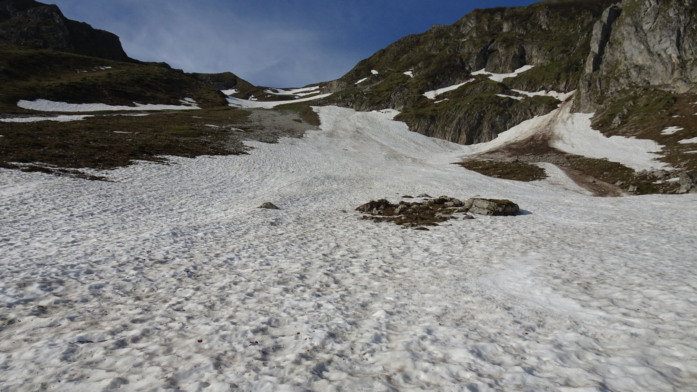 Es hat in der Mitte nur eine 20m breite Querung ohne Schnee.