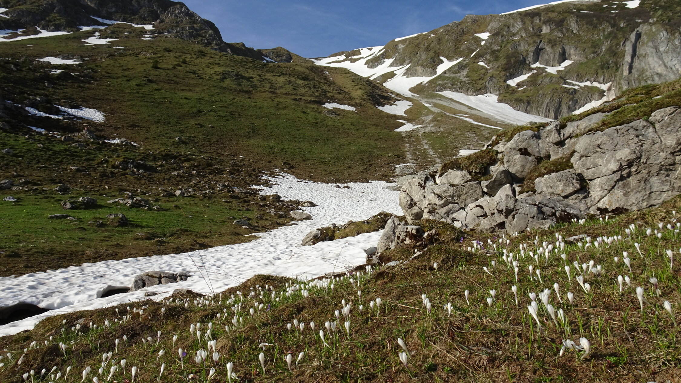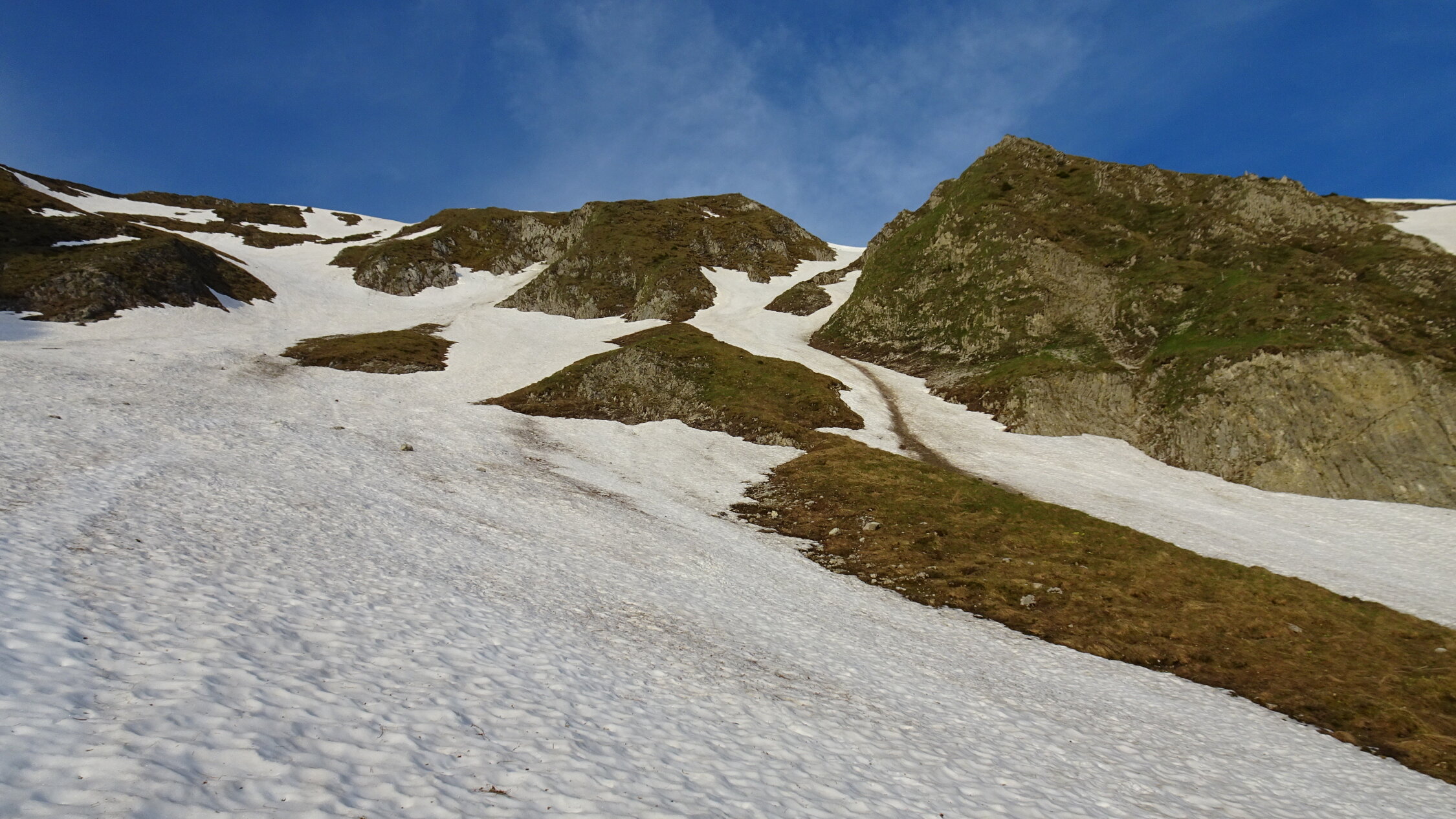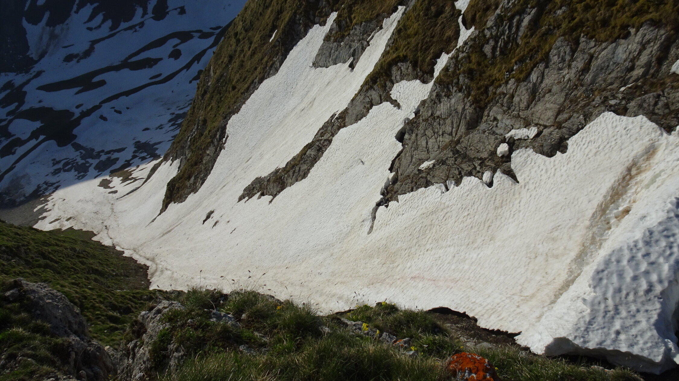 Es hat in der Mitte nur eine 20m breite Querung ohne Schnee.