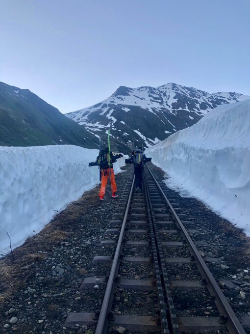 Weil der Furkapass noch geschlossen war, starteten wir in Gletsch und liefen dem Trasse der DFB entlang bis zur Station Muttbach/Belvedere. Von dort konnten wir mit den Skier bis zum Couloir laufen. Anschliessend Fussaufstieg bis zum Gipfel.