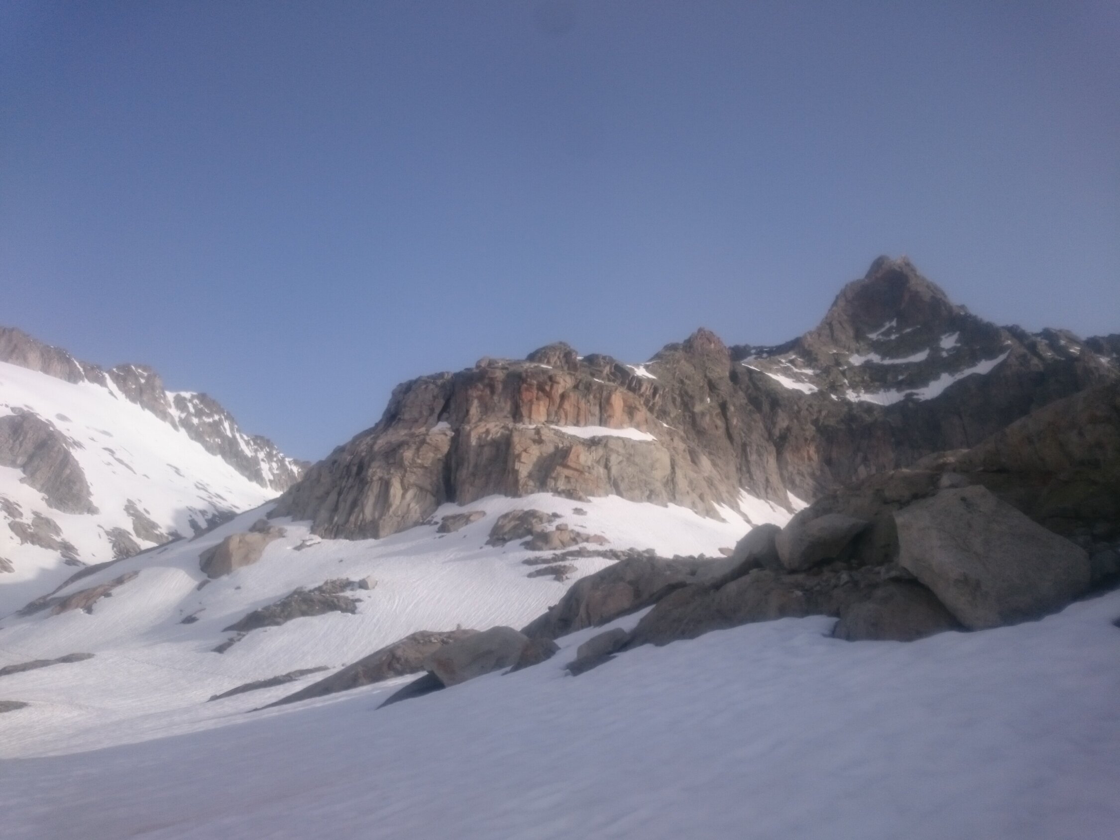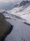 Der Abstieg durch die SW Wand ist noch mit steilen Firnfeldern durchsetzt und ist ein alpines Abenteuer für sich!