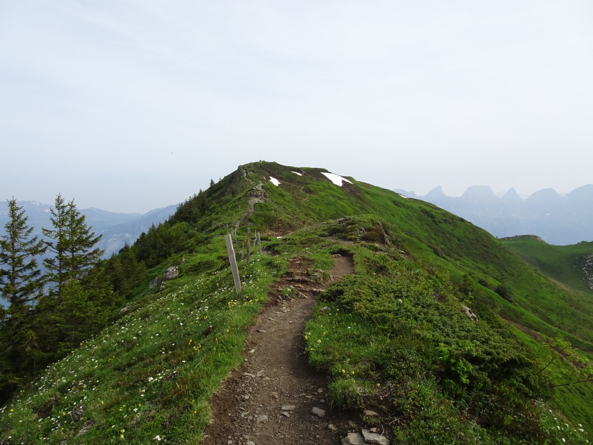 Wege meist feucht vom gestrigen Gewitter, aber nirgends matschig oder sumpfig. Schnee nur noch auf ganz kurzen Passagen vorgefunden.