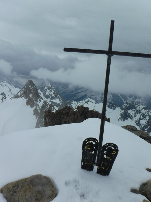 Tourenbeginn um 09:00 Uhr bei 17°C unter bedecktem Himmel und leichter Südbise. Starke Setzgeräusche auf der Schneedecke des Westrückens vom Torrenthorn. Schneeschuhe ab Mittelstation Torrentalp angeschnallt.