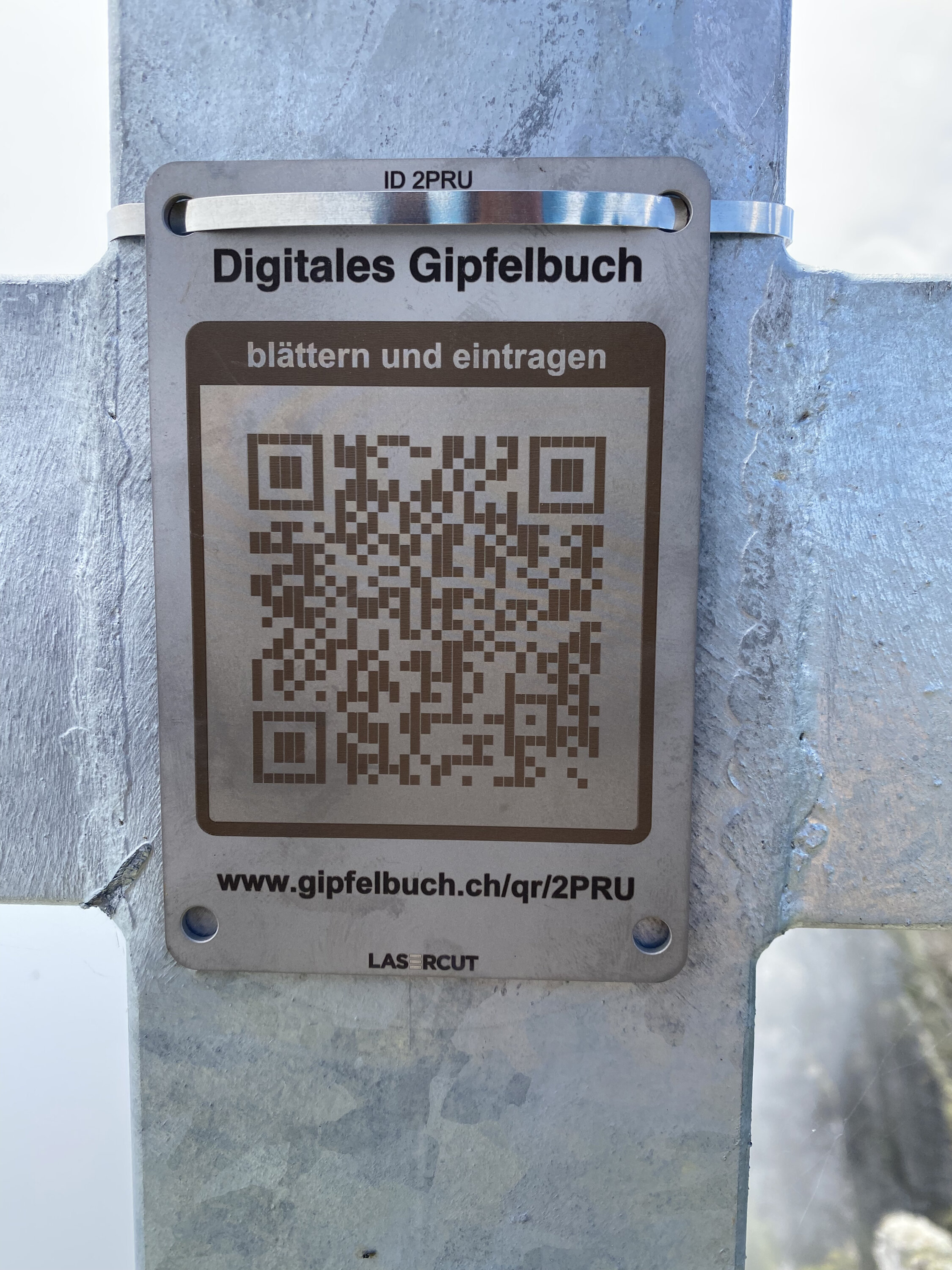 Neue Gipfelbuch Plaquette am Fulen. Bitte noch einen zweiten Spanndraht mitnehmen und befestigen, danke.