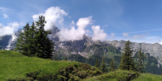 Es muss nicht immer der höchste Gipfel im Tal sein. Die Ausblicke auf die hohen Nachbarn, die sich teilweise nobel in Wolken hüllten, waren sehr schön.