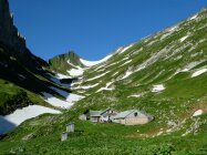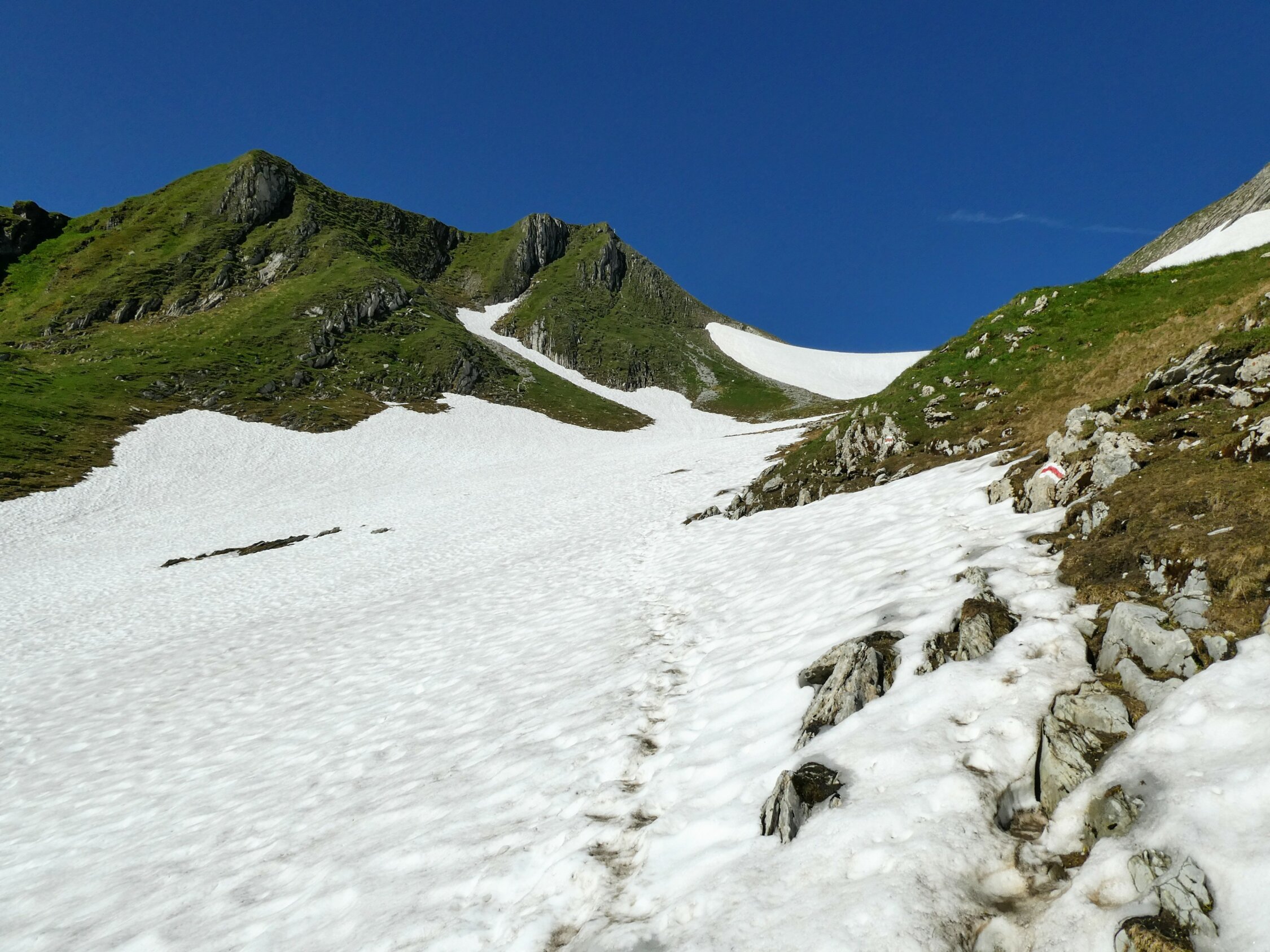 Im Abstieg über Tesel nach Wildhaus muss man bis unterhalb der Alphütten von Gruebe noch einige Schneefelder überqueren. Das geht aber überall problemlos.