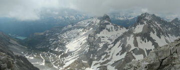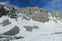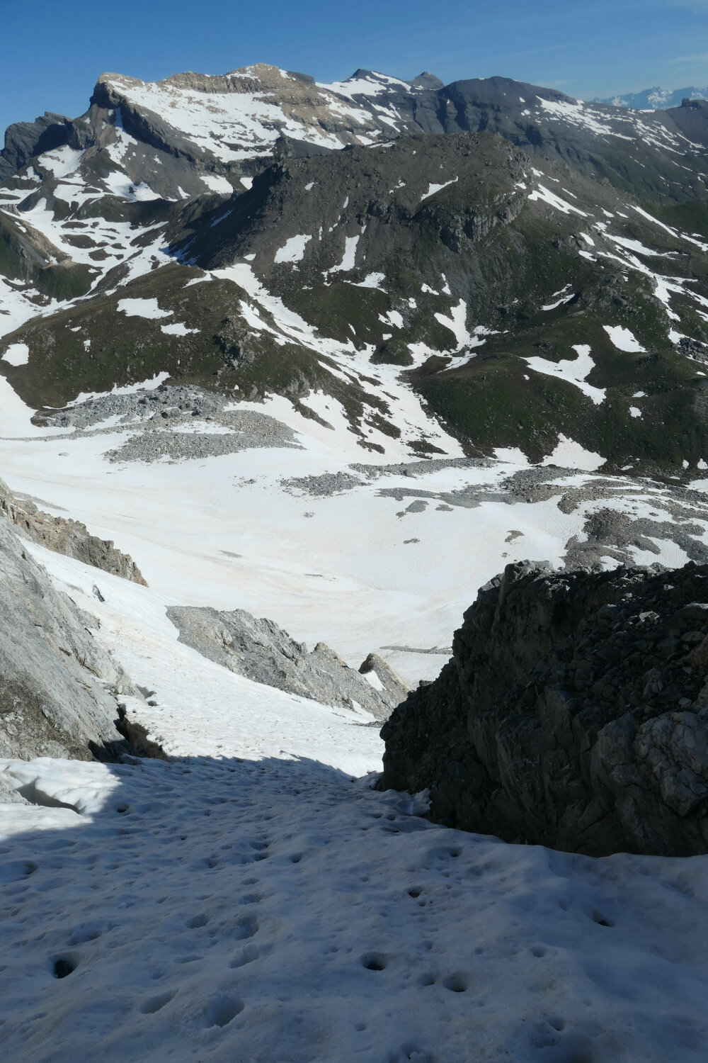 Im Abstieg über den Nomalweg zur Alperschälilücke noch sehr viel Schnee in der Rinne angetroffen, auch noch gut begehbar (mit Steigeisen) bis unten, nur der Einstieg vom flachen Gipfelschuttplateau in die Rinne heikel, mit viel losem Zeug und wenig festen Griffen/Tritten, ca 30Hm.