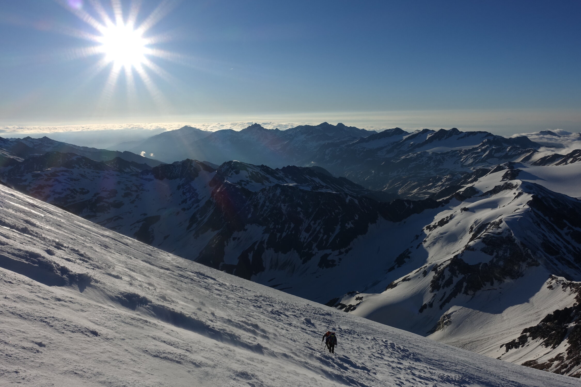 Flanke bis zum Gipfel ebenfalls in gutem Trittfirn, keine Stellen mit Blankeis etc. vorhanden.