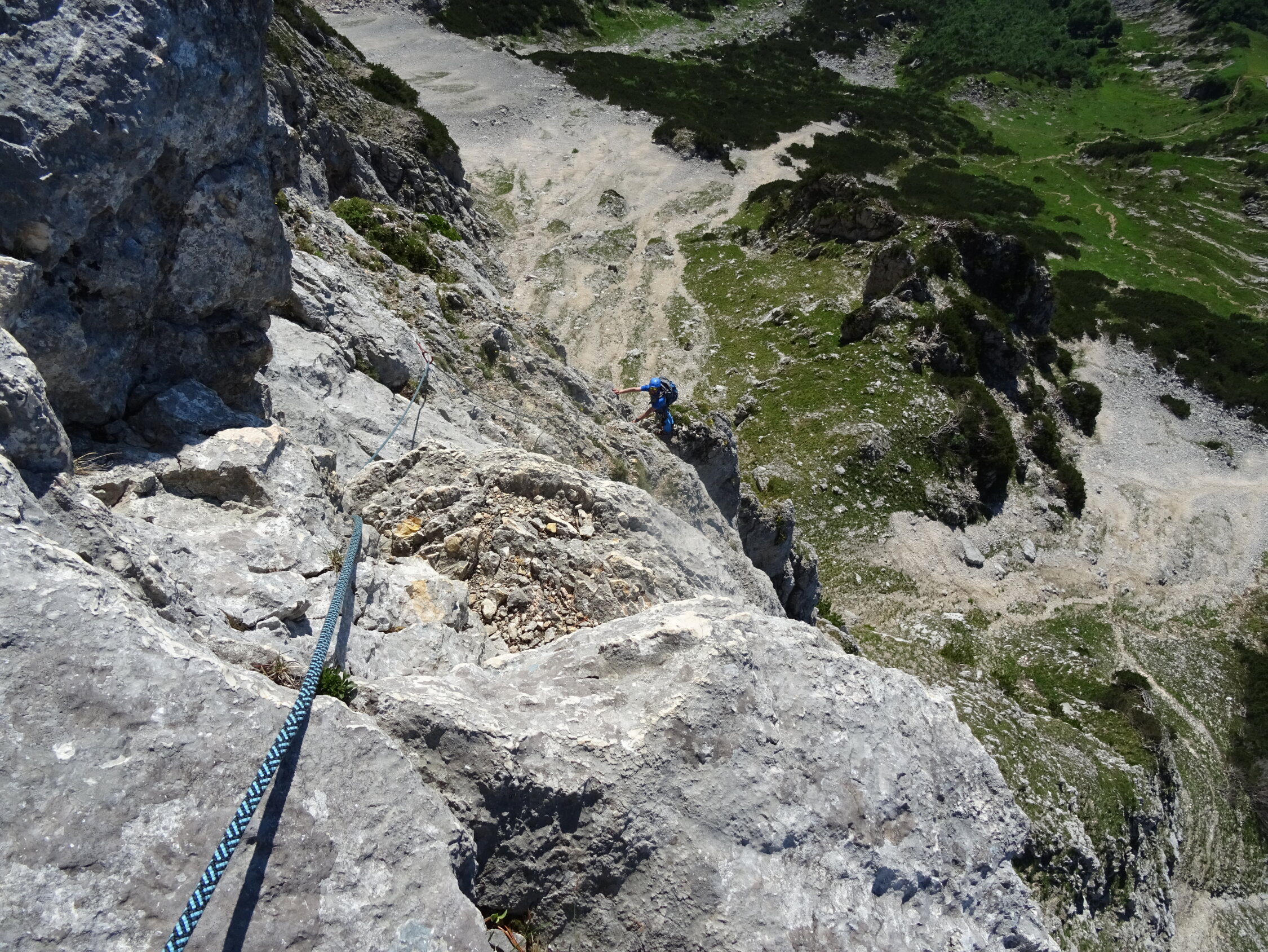 super trockener Fels, schöne Route und griffig, nicht zu schwer; manchmal an ein paar Stellen speckig; im letzten 4er Kamin am besten aus der Engstelle rausklettern, da gehts am besten;