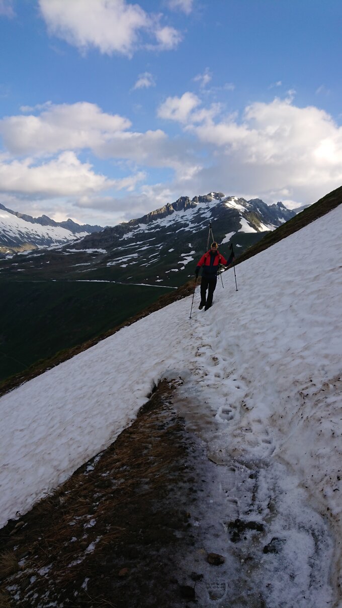 Für Ende June gute Verhältnisse. Es hat die ganze Nacht geregnet was den letzten Schnee im Couluar von unten (Muttenhorn Belvedere) vernichtet hat. Also vom Pass gestartet. Aufstieg und Abfahrt mit Hagel Auflage. Nicht zu weich oder hart. Selbst die Regenrinnen waren gut zu fahren. Aufgrund der Verhältnisse u Wetter haben wir den Schluss Hang ausgelassen. Schöne Geburtstags / Saison Abschluss Tour