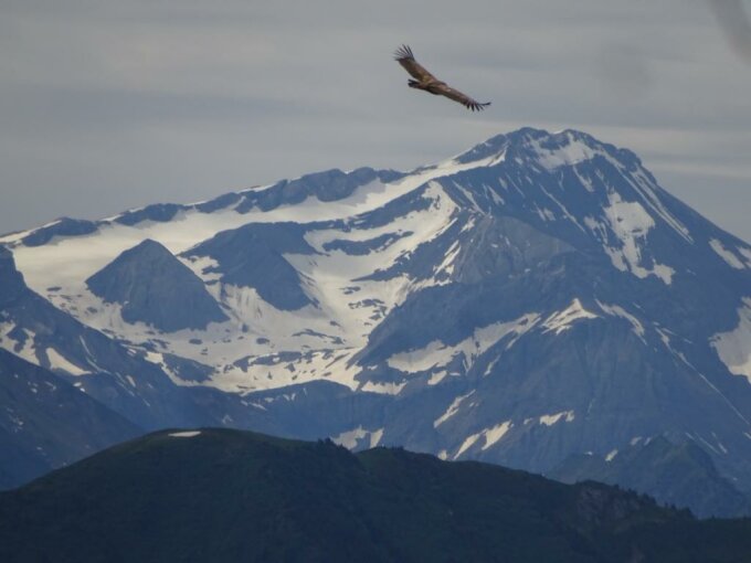 Als wir auf der Fochsenflue weilten, kreiste ein Schwarm von 30-40 Gänsegeiern über dem Gebiet.