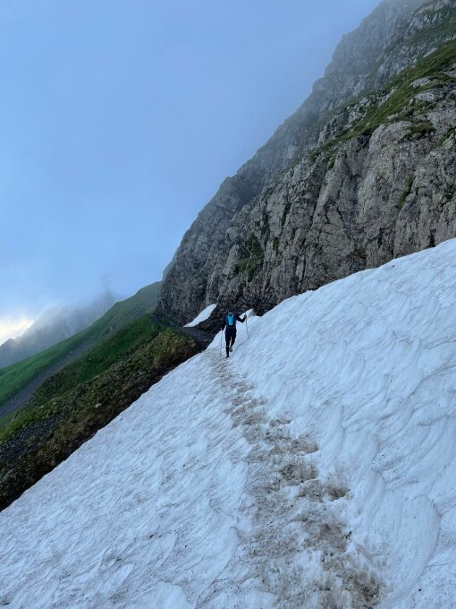 Zur Tierwies sind noch einige Schneefelder zu queren / grundsätzlich problemlos / guter Trittschnee / jedoch keine Ausrutscher erlaubt / für weniger Trittsichere und Kinder evtl. Seil und Pickel zum sichern mitnehmen / ab Tierwies noch viel Schnee in den Mulden und Rillen aber sehr gut zum Laufen / Vorsicht an den Rändern der Schneefelder!