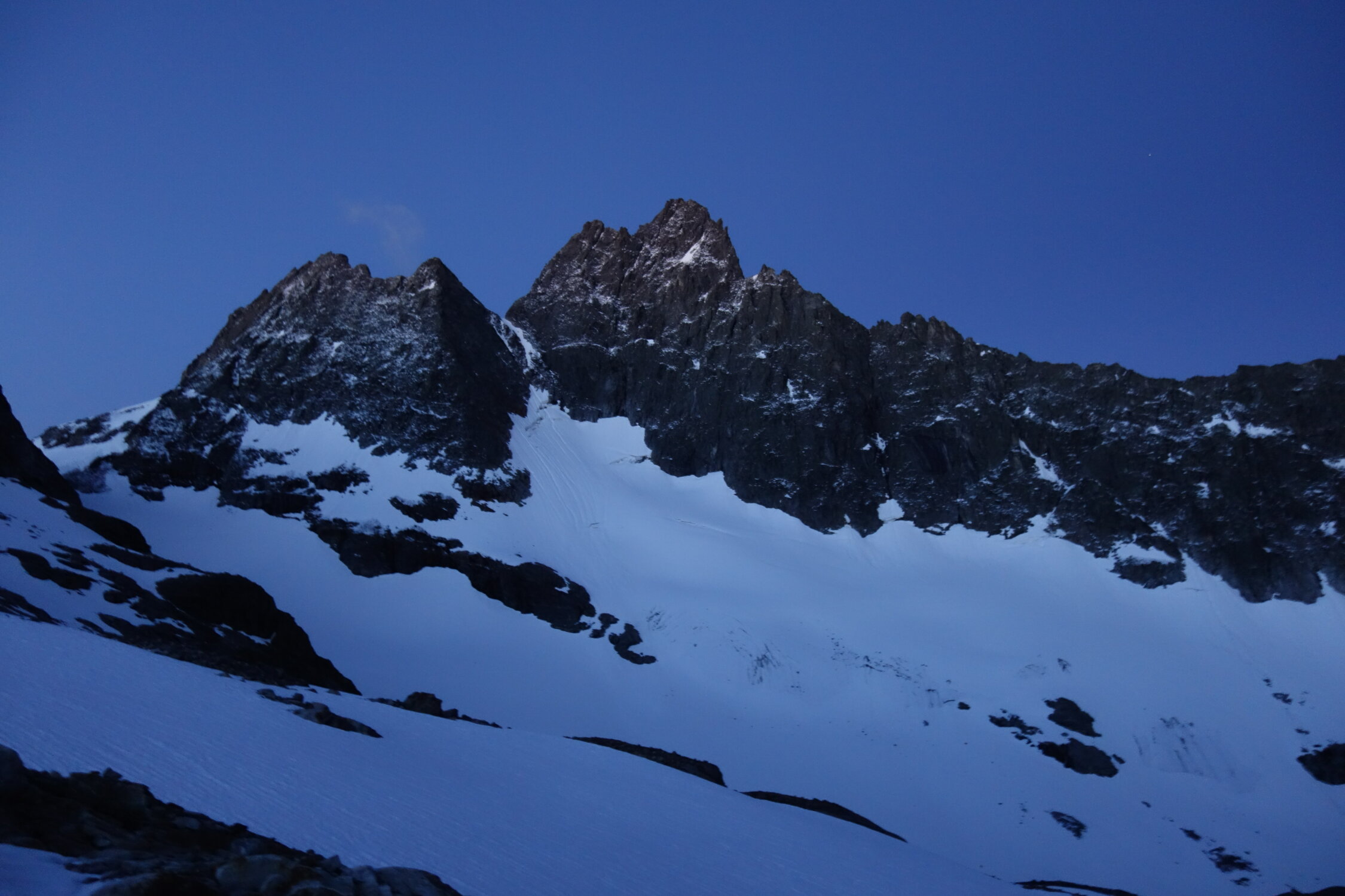Start um 3:30 von der Silvrettahütte, Schnee tragend gefroren. Bei Einstieg ins Couloir zum Verstanclasattel um 5:40. Bergschrund einfach zu umgehen, ca. 15m Brüchiger Abschnitt im Couloir sonst guter Trittschnee, im Sattel um 7:00. Durch die Niederschläge der letzten Tage in der 1. Seillänge bis zur Sonne, einzelne Tritte etwas glatt, oder mit Schnee, jedoch durchwegs gute Sicherungsmöglichkeiten mit Friends. An der 5a Stelle hängt noch ein alter Schlaghaken, besser Friend setzen. Um 11:30 am Gipfel, insgesamt schöne Kletterei aber hier und da sind auch grosse Blöcke nicht unbedingt fest. Im Abstieg zu anfangs noch Schutt dann kurze Gratabkletterei II-III, anschliessend in dickem, festen Firn bis auf den Vernelagletscher, der noch gut eingedeckt ist Firn. Am Fereinahaus um ca. 16:30, bei Kaffee und Kuchen, letzter Bus fährt um 17:30, 14CHF p.P.